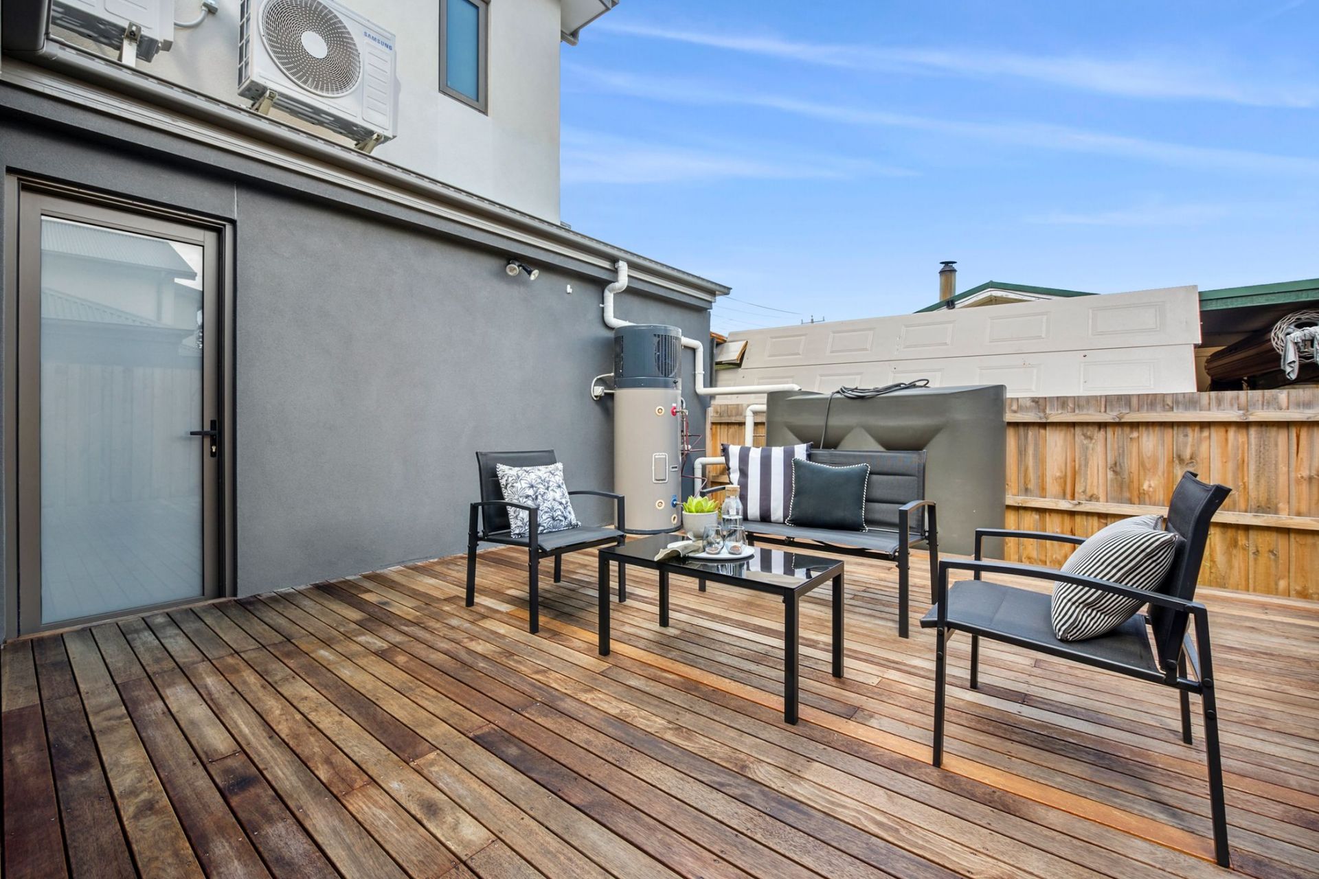 A contemporary construction, this two-storey residence maintains low-maintenance lifestyle . Ground-floor layout effortlessly flows through living and dining areas, leading to a well-appointed kitchen featuring stone waterfall benchtops, ASKO appliances, dual Frankie sink and ample cabinetry. Reflecting casual living across a sun-kissed decked alfresco, this private space invites relaxation and outdoor enjoyment under the open sky.