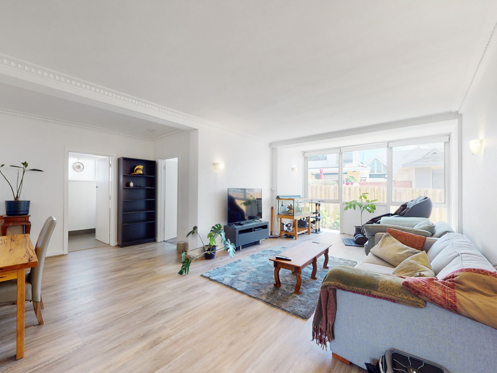 - Open-plan living and dining