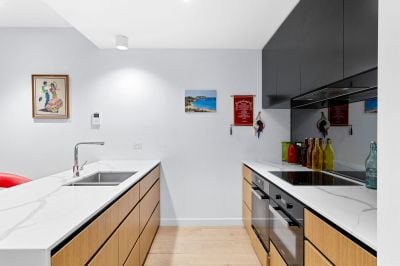 With a captivating rooftop terrace that offers panoramic bay views, along with an established herb garden, communal barbecue space, and bocce green, this exclusive apartment is designed for those who wish to embrace the vibrant beachside lifestyle around them.