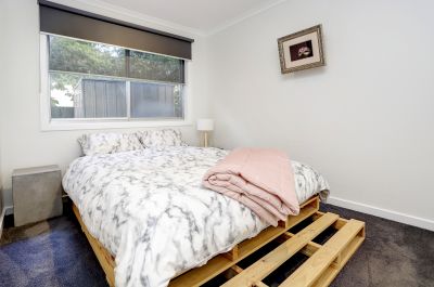 Outdoors, enjoy a private rear yard with a garden shed, plus access to a shared grassed area and clothesline. With off-street parking in a boutique block of just four, this home offers peace and convenience just a short stroll from Main Street, pristine beaches, parks, and public transport.