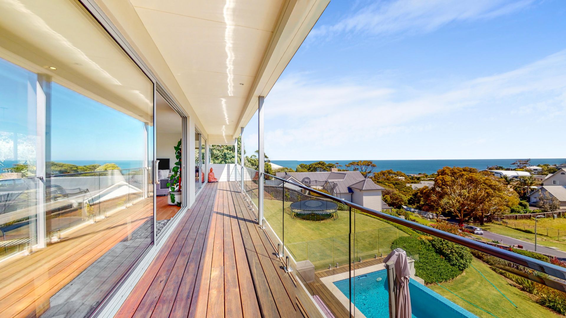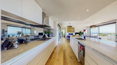A striking synergy between indoor and outdoor spaces defined this breathtaking contemporary home, which is beautifully melded into an elevated block to capture a stunning outlook over the swimming pool, and coastal panorama with Port Phillip Bay beyond. Timeless contemporary colours and finishes, enormous picture windows frame the serene garden surrounds, while a striking modern kitchen with , premium appliances and butler's pantry has been thoughtfully constructed for the true gourmet cook. Vast sliding glass doors open to an outdoor dining terrace cascading down to a heated pool, and sundeck in this vacation-like setting, which boasts a half basketball court all among glorious landscaped gardens. 4 spacious bedrooms and a study .