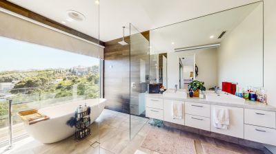The generous master suite includes a fitted walk in robe and a luxurious ensuite; melt your days stresses away in the free standing bath with bay views.
