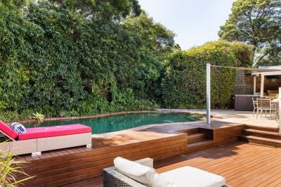An array of glass doors open to a choice of alfresco spaces, while outdoor living will be sublime on the expansive multi-level deck and terrace with spa gazebo, pool house, tranquil emerald lagoon pool and spacious backyard delivering a vacation-like setting to enjoy year round.