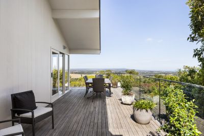 Tapered into the elevation of the cascading 1/4-acre (approx) allotment to capture sweeping views across the coastal panorama to the bay, this multi-living-zone home is defined by soaring architectural lines and warm inviting spaces embellished with a suite of contemporary upgrades.