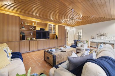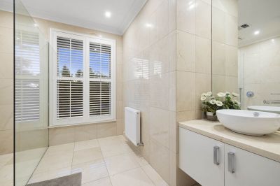 Offering grand family living steps from Ranelagh Beach and spread across two titles on 1563sqm, privilege and position combine to create an unparalleled coastal lifestyle amid stunning manicured gardens and gentle bay breezes. Featuring four luxurious bedrooms with the flexibility of up to six, a pool and spa, lush lawns, box hedge gardens and stunning white roses lining a semi-circular driveway that sweeps past an entry portico, this is a vision of timeless traditional opulence in one of Mt Eliza’s most sought-after streets. Superbly maintained and presented, a double height formal entry provides an immediate sense of the home’s proportions with a huge formal lounge with open fireplace and separate formal dining room, as well as a sprawling family room with an atrium ceiling opening to the very private pool and spa area beneath shady trees – perfect for long, hot summer days. The lower level also features a bedroom/study, shower room and sauna, a powder room and large modern kitchen with Miele appliances, push button opening overhead cupboards and soft-close drawers. Upstairs, the main bedroom pampers with a walk-in robe and ensuite featuring a bath and separate shower, while there is also a family bathroom and four more generously proportioned bedrooms including one with fitted bookcases and used as a gentleman’s study. A host of other features include in-floor and panel heating, split-system air conditioning, ducted vacuum and a remote double garage.