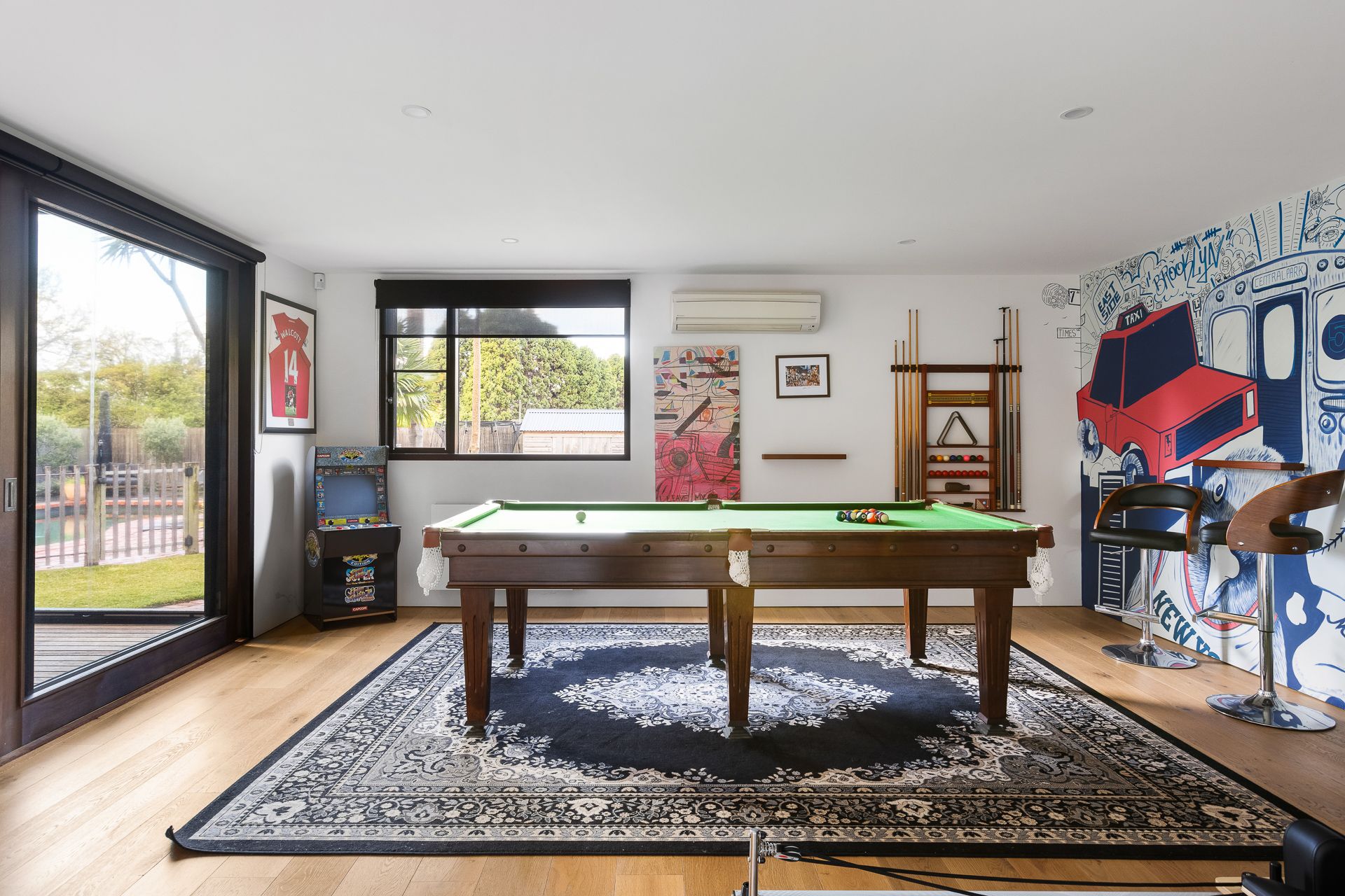 Offering bespoke beachside luxury and first-class alfresco entertaining, the distinctly modernist vibes of this superb four-bedroom home have helped created the perfect refined family oasis close to schools, shops and the beach. Set in professionally landscaped gardens behind remote gates with an inground pool, three living areas and three bathrooms, the stunning home is filled with light courtesy of clever clerestory windows while a palette of warm natural tones provide a soothing and relaxed atmosphere. With a theatre room, open plan living/dining, a games room and gym plus the huge all-weather alfresco zone with a barbecue kitchen, feature gas log fire and pull-down blinds, there’s a space for every occasion, while the free-form inground pool offers summer fun surrounded by brick paved and decked areas to lounge and soak up the sun. At the heart of the home is an entertainer’s kitchen with stone benchtops, a 900mm Italian Bertazzoni stove and instant boiling/chilled water Zip tap, while parents are treated to an enormous main bedroom and luxe ensuite. Other features include a guest bedroom with ensuite, zoned heating and air conditioning, app-controlled home automation, full security system, Sonos surround sound system, large laundry with drying cupboard, remote entry gates, rooftop solar panels and a double garage.