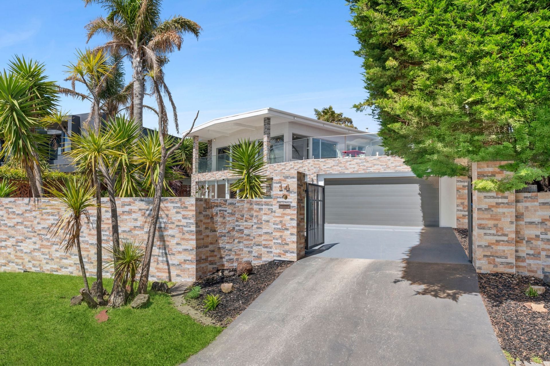 Accommodation includes two ground floor bedrooms, a large first-floor main and a fourth bedroom/study, serviced by a bathroom on each level. Enjoy tropical-feel landscaping featuring magnificent palm trees and a large lawn area for the kids to play, plus a garden studio.