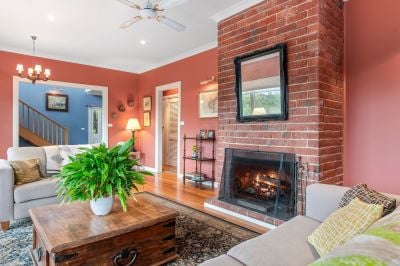 Thoughtfully crafted over both floors, the accommodation boasts four bedrooms and three bathrooms, with a first-floor opportunity for guest accommodation supporting a ground-floor master suite that comes with a walk-in robe, an ensuite, and a personal study. Anchored by a ground-floor lounge area, enhanced by an exposed brick fireplace and solid timber flooring, a secondary wing for further accommodation arrangements spills privately beyond.