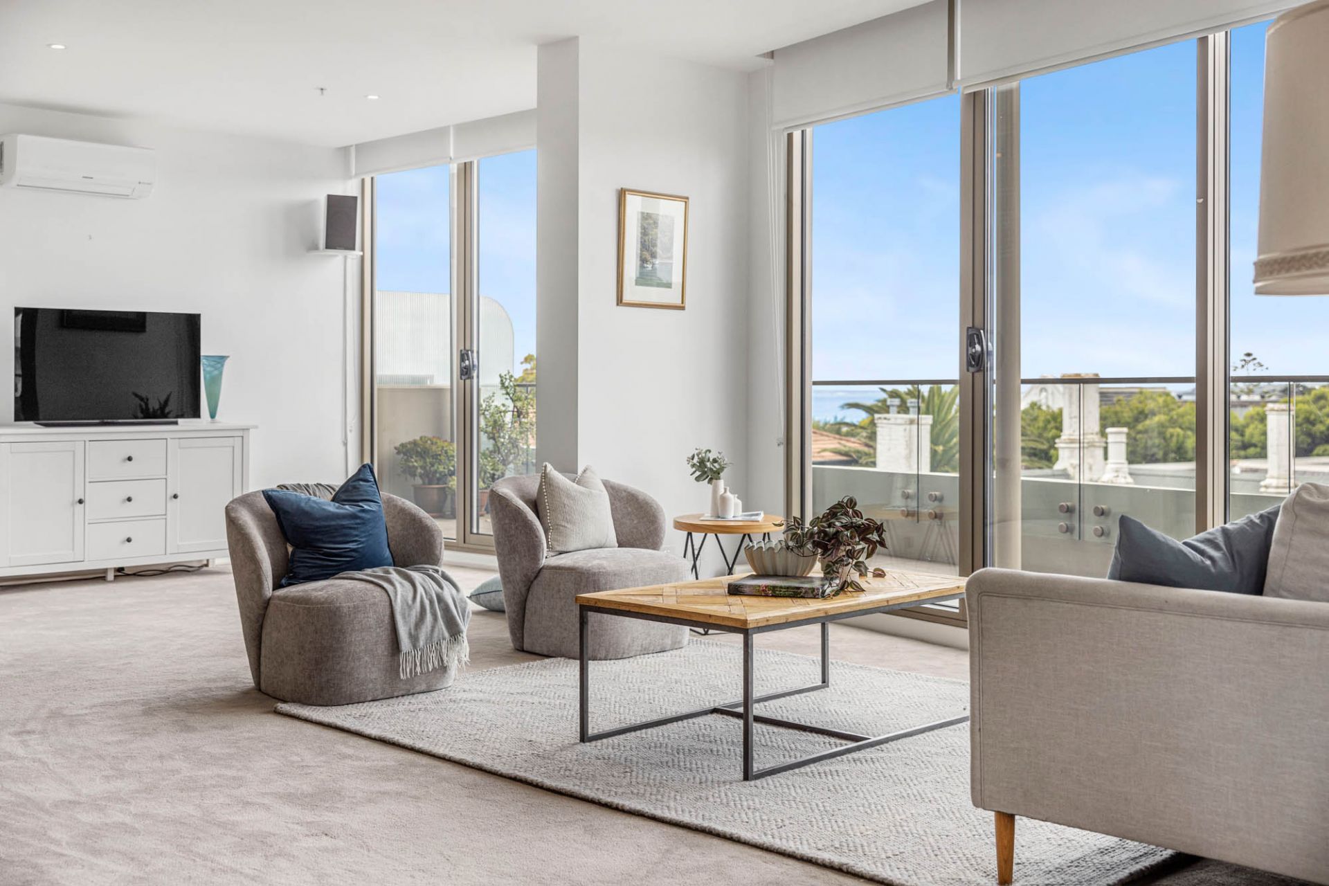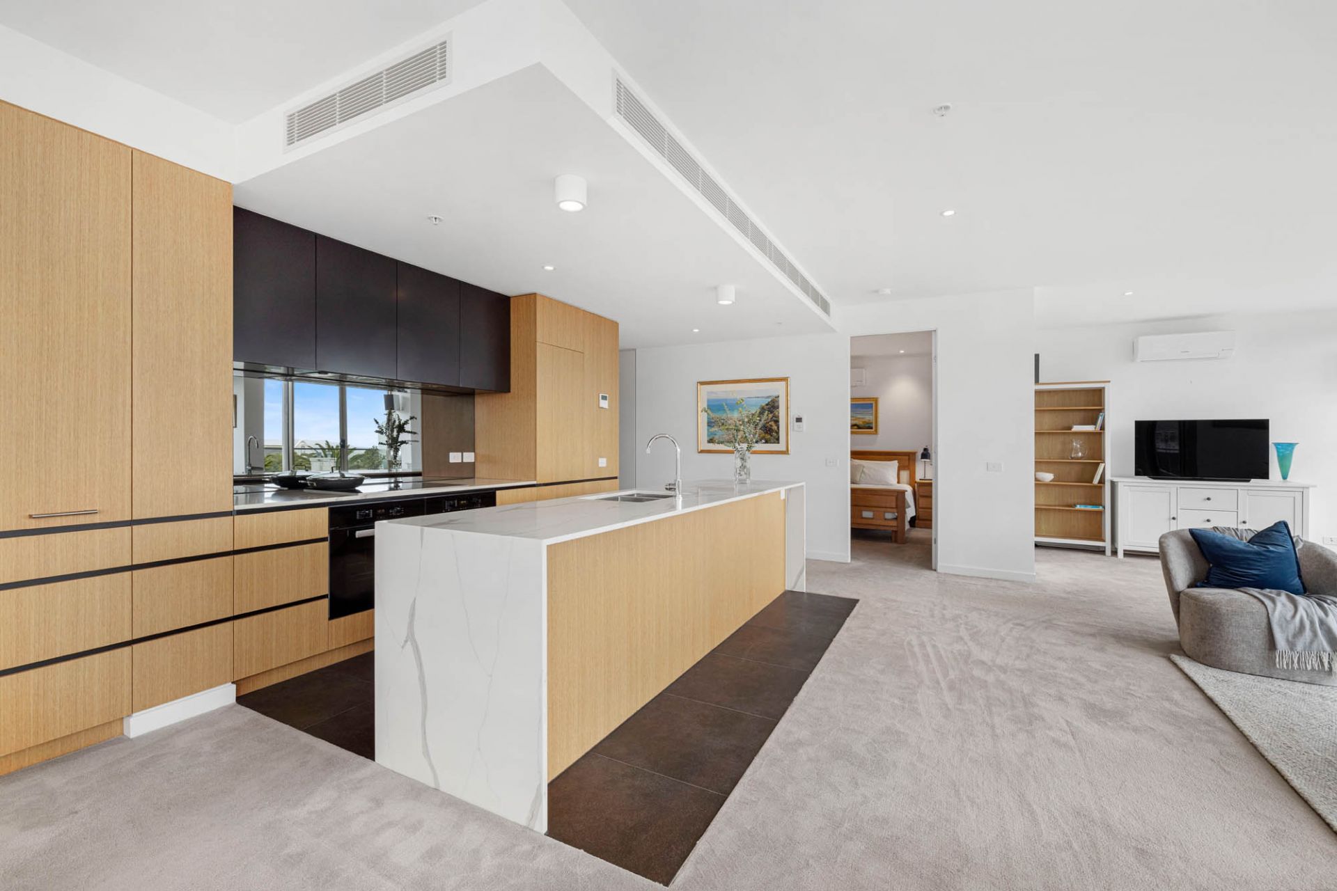 Originally conceived as a three-bedroom unit, extra space has been devoted to the spectacular living and dining area with a series of doors opening to a full-length north-east facing terrace. Features include a full-size designer kitchen with Miele oven, induction cooktop, microwave, dishwasher, integrated fridge/freezer and marble island bench. Two light-filled generous bedrooms include access to ensuites. A European laundry with Miele washer and dryer, zoned heating, separate split system air-conditioning, lift access, security entry, two car spaces and lock up storage completes this dreamy beach-side location.