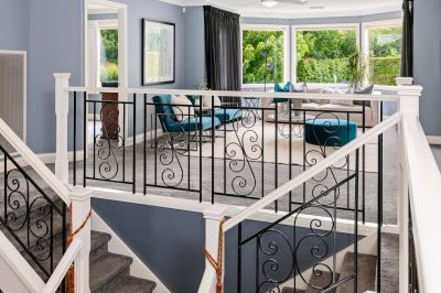 - Master with dressing room, ensuite & flocked damask wallpaper