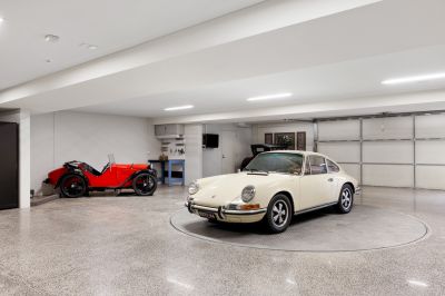 The lower level provides exceptional vehicle accommodation with parking for multiple cars up to ten plus a motorhome, boat, or caravan supported by interconnected automated sliding doors, a remote turntable, and dust-controlled workshops offering outstanding storage and functionality.