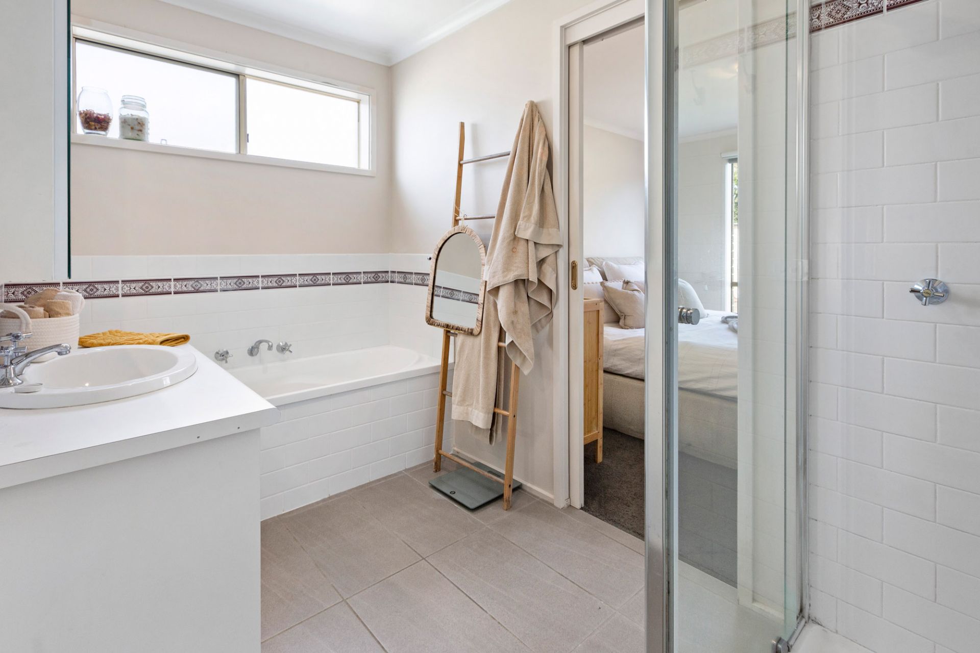 - Two-way bathroom with shower and tub
