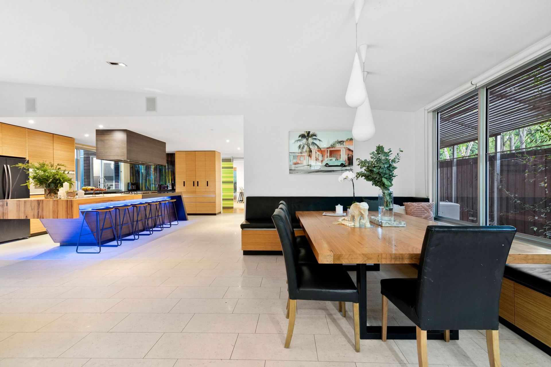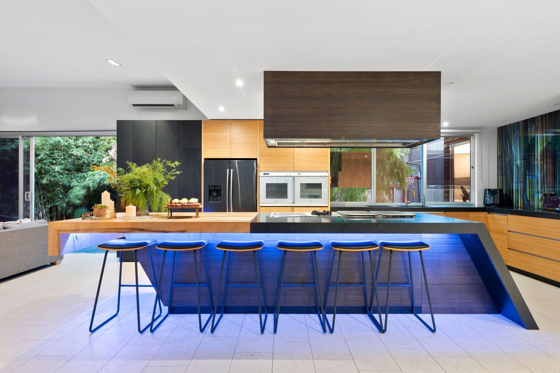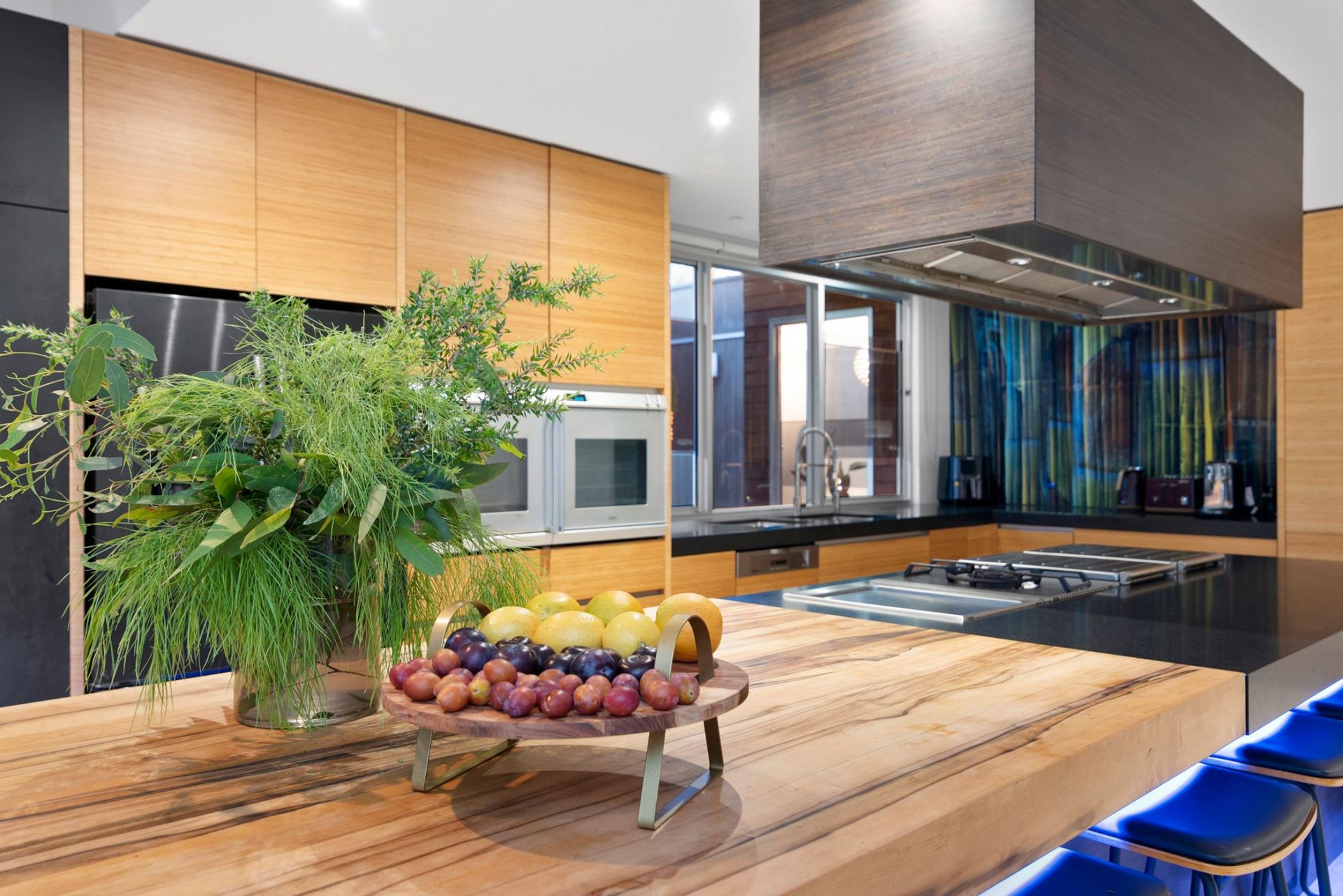 - Black Granite and Blackheart Sassafras benchtops with Gaggenau stovetop, teppanyaki grill and dual ovens, in-built banquette seating