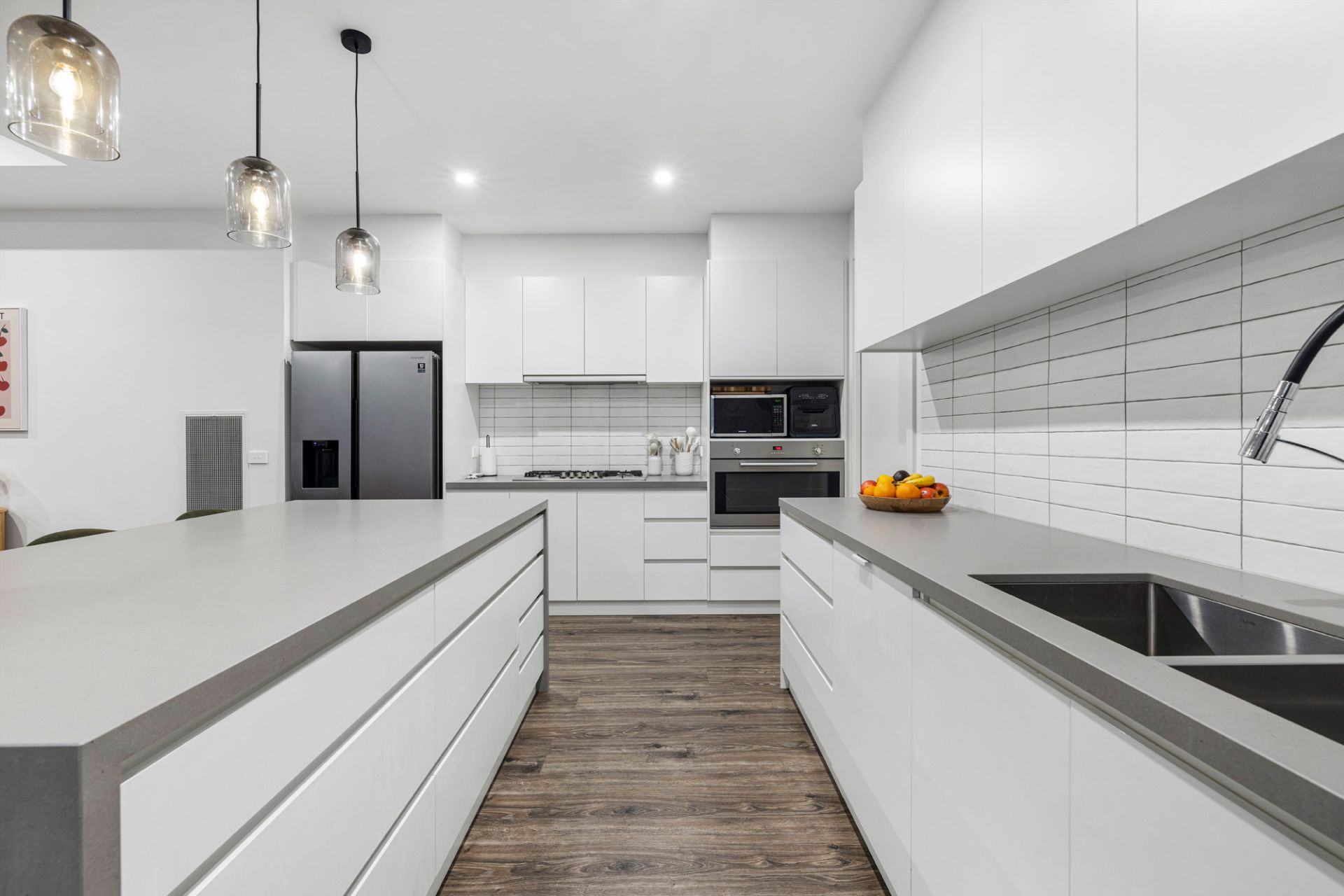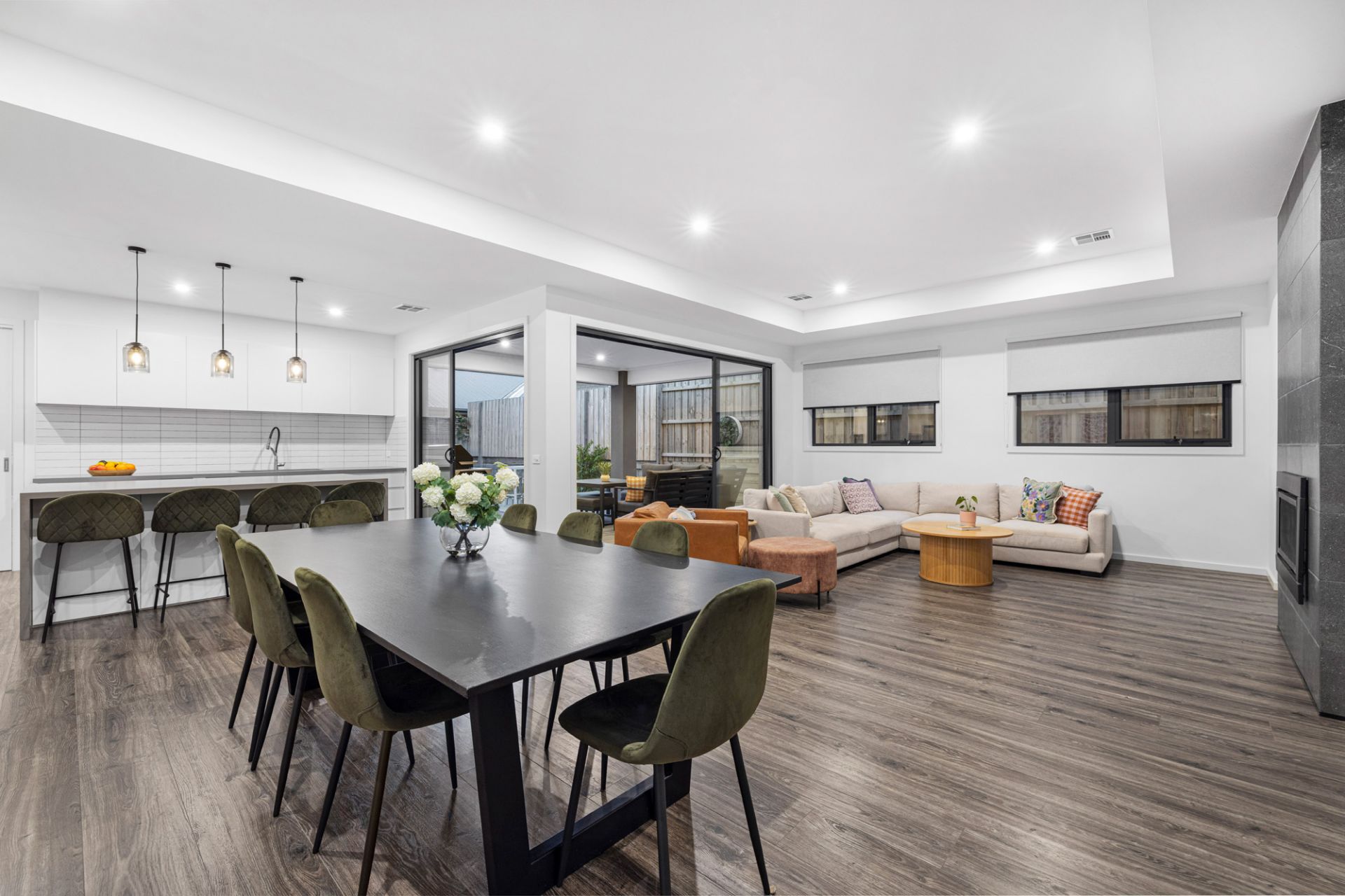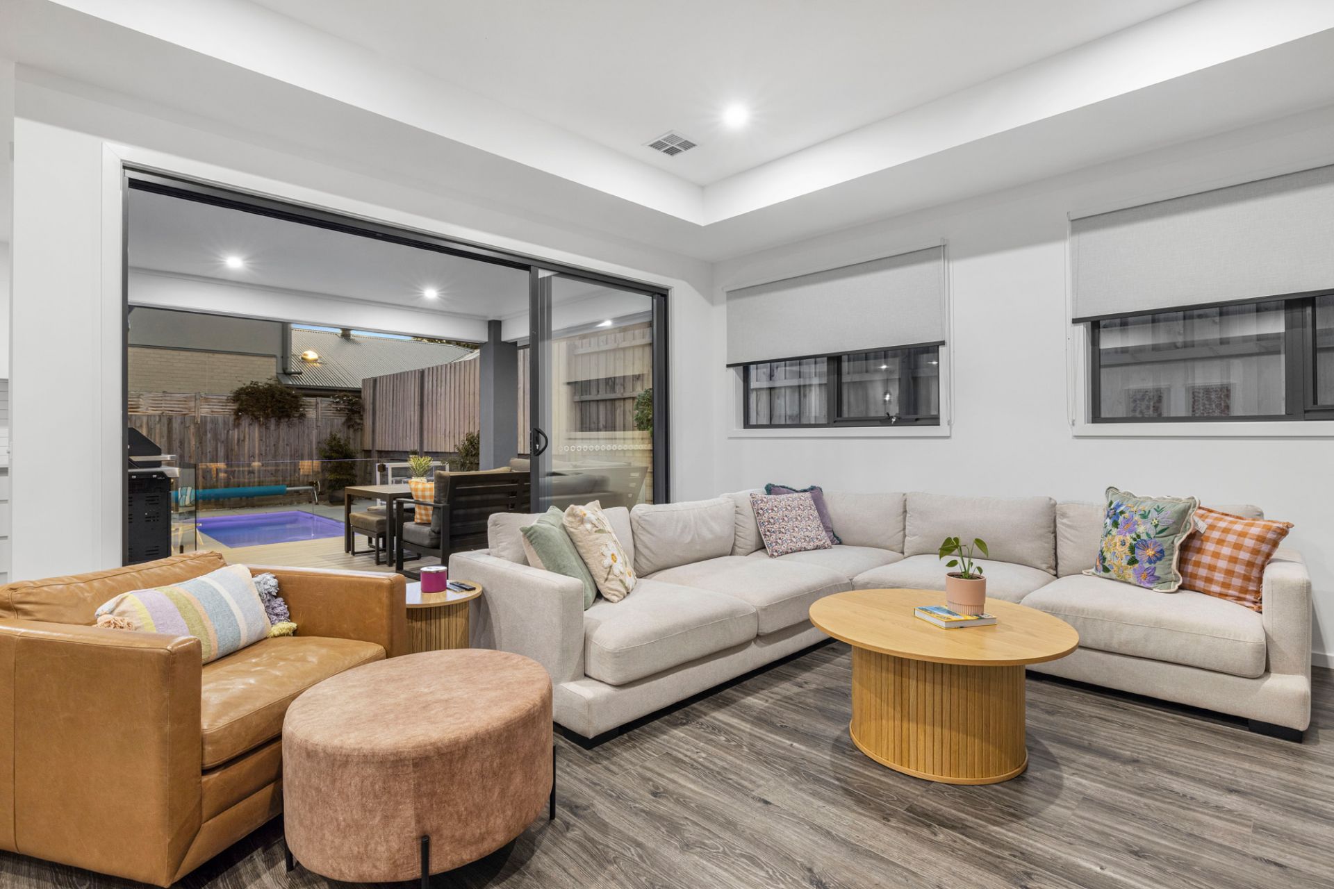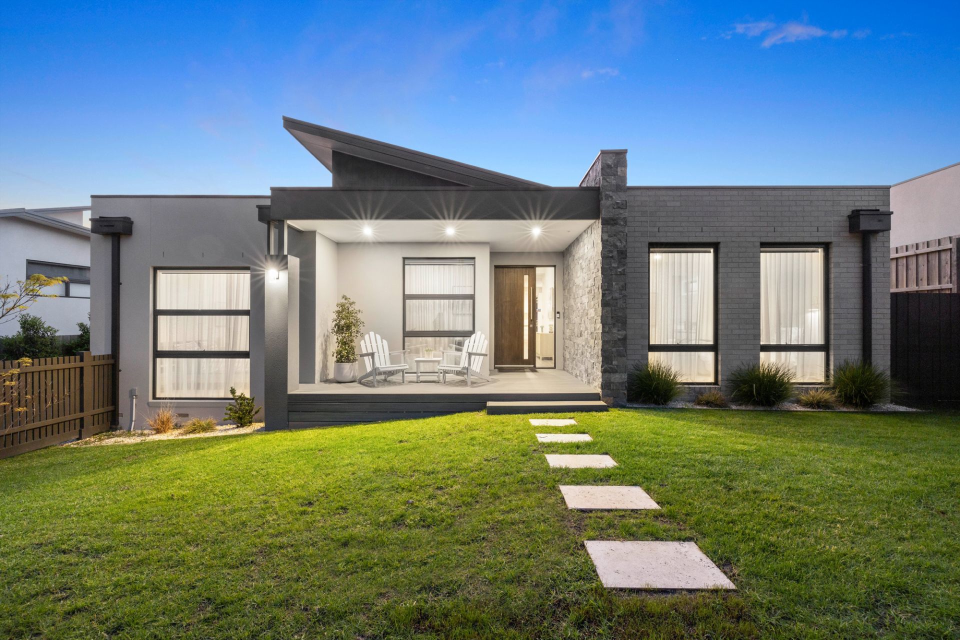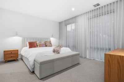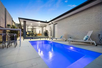 Just three years old, full of exceptional modern style, within walking distance of Main Street and offering sublime single level living, this stunning three-bedroom townhouse has it all! Everything is here to create the perfect seaside lifestyle including your own private inground pool, covered alfresco deck and attractive street frontage with a secure yard. Stroll to Mills Beach every morning, enjoy dinner in the evening at one of Mornington’s endless list of restaurants or simply relax in total comfort by the pool – this is living! Two sets of stacker doors open from the large open plan living area and kitchen to the deck, a vaulted ceiling in the entry provides an extra sense of space and there is a second cosy living area set between the two junior bedrooms in their own wing. Parents are treated to a large main bedroom with walk-in robe and ensuite and the kitchen beautifully marries form and function with stone benchtops, a butler’s pantry, Ilve appliances and fridge plumbing. Other features include a gas log fire, zoned ducted heating and airconditioning, a powder room, generous storage and a remote double garage.