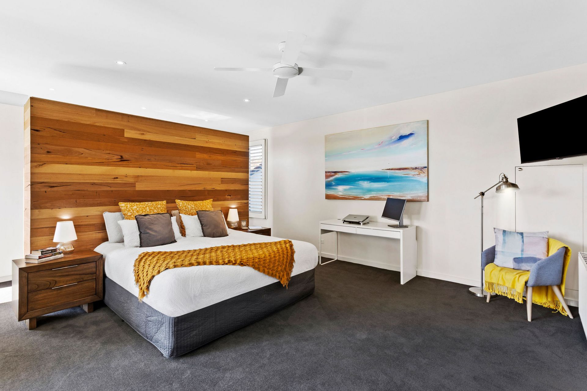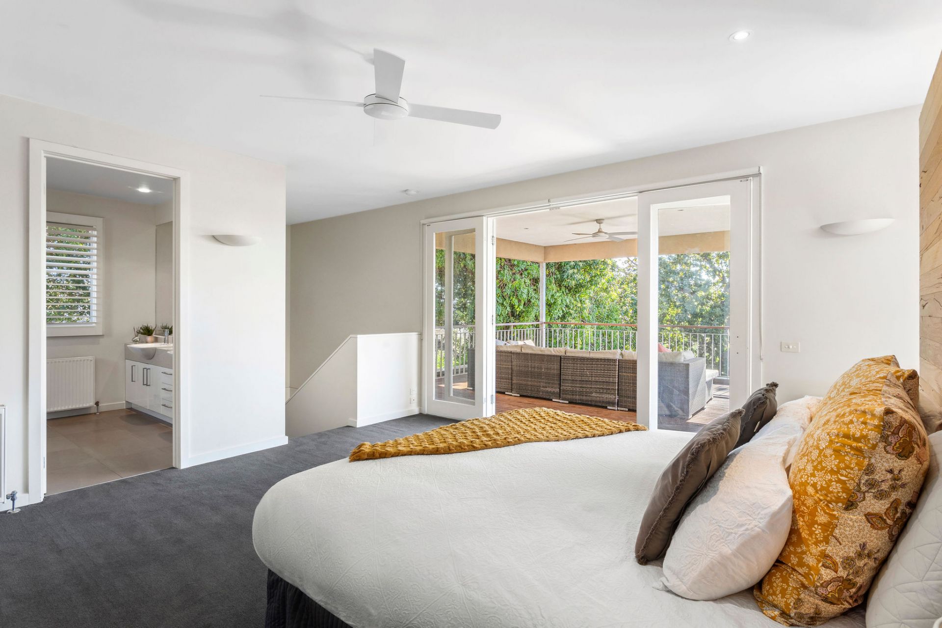 - First-floor master retreat with private bay-facing balcony, ensuite, walk-though robe