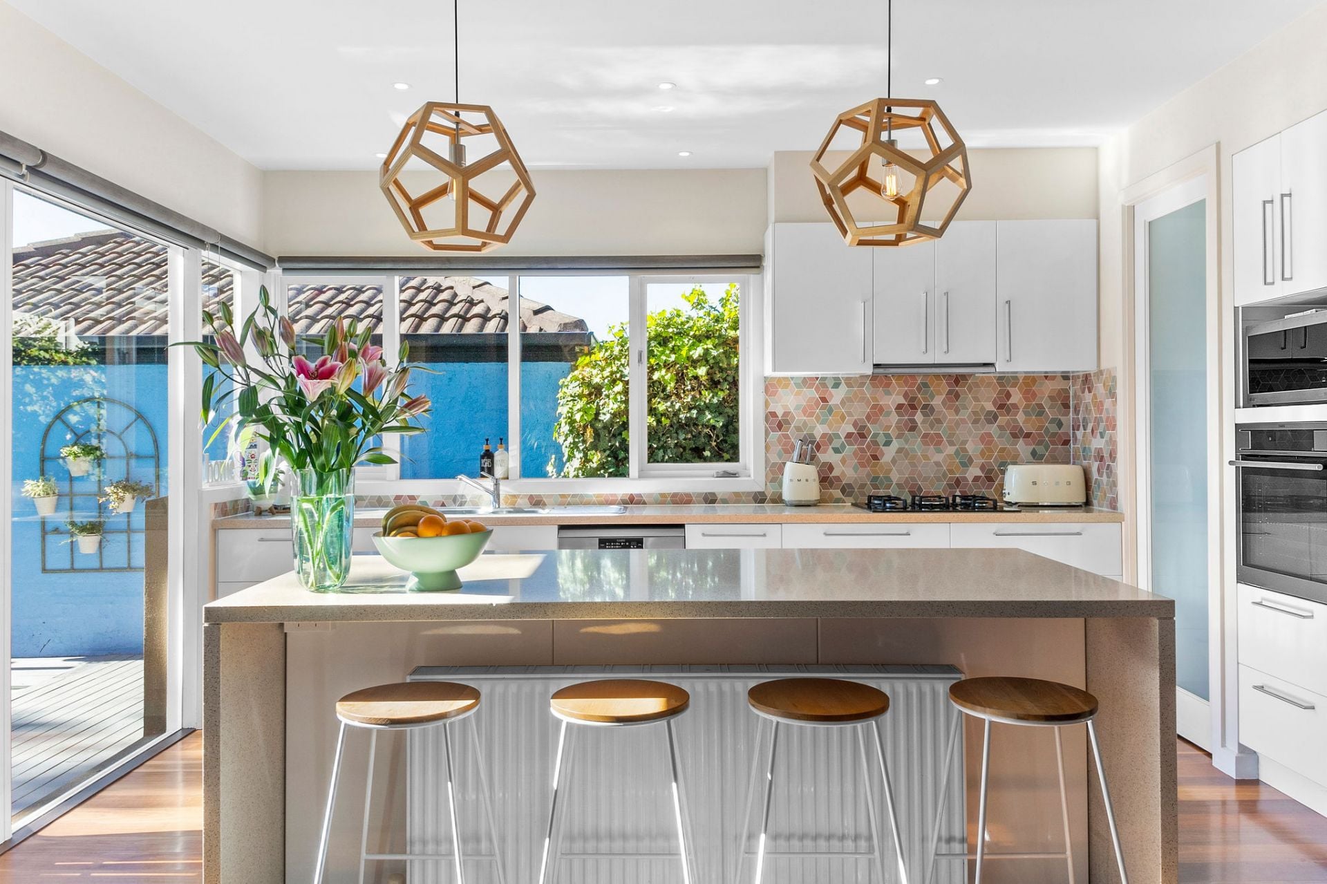 Artfully crafted for a life of carefree coastal elegance, the classic red-brick design subtly beckons you to explore the thoughtfully reimagined interior, with rich hardwood floors anchoring art-deco mouldings and elevated ceiling heights as entertaining opens across a formal lounge with fireplace, open dining and kitchen zone, and a carpeted sunken lounge with alfresco access.
