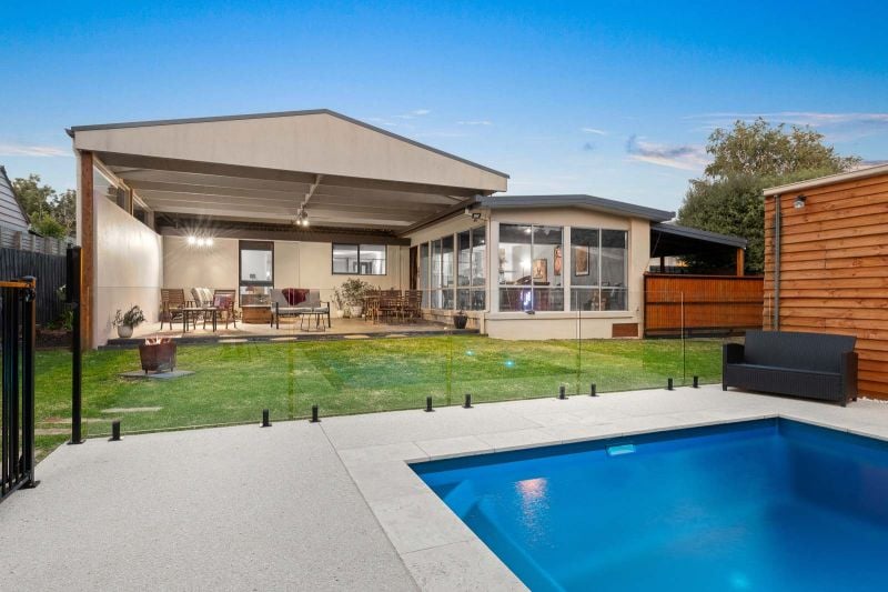 Designed with entertaining in mind, the home boasts a sparkling in-ground pool and a superbly appointed outdoor entertaining area, ideal for hosting family gatherings, summer soirées, or enjoying quiet moments of relaxation.