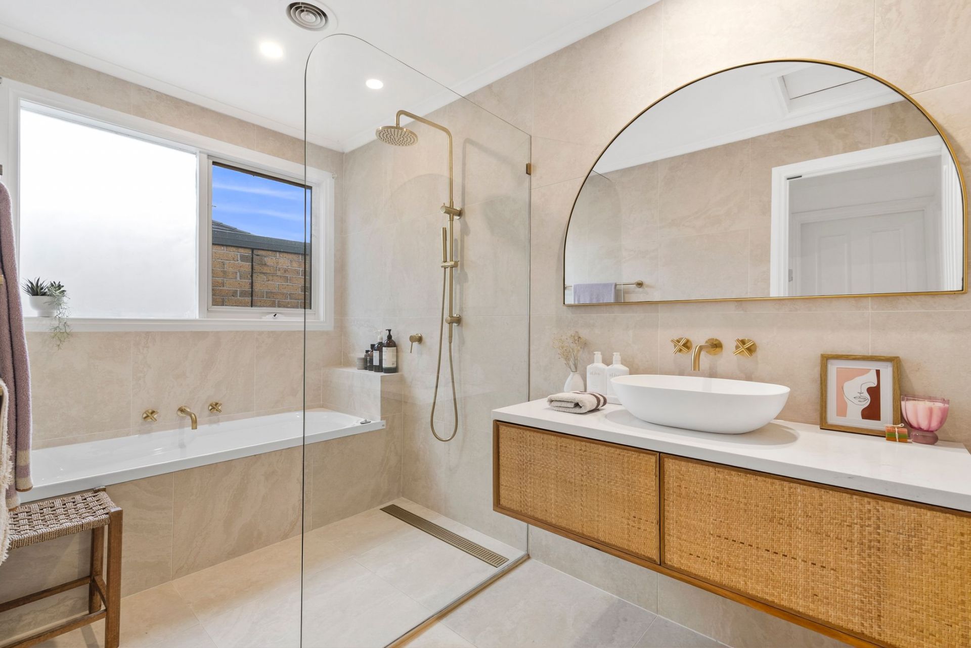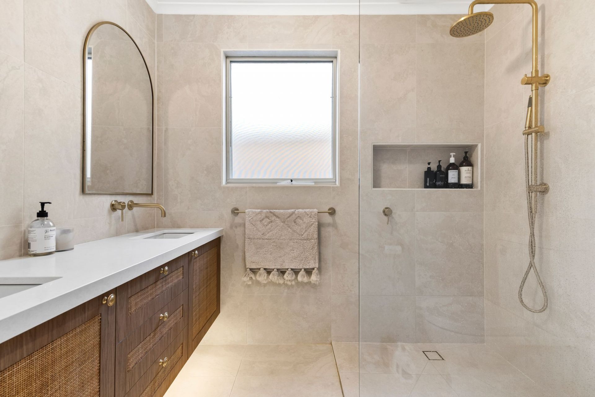 - Luxe new ensuite includes rainfall shower, dual vanity, and toilet