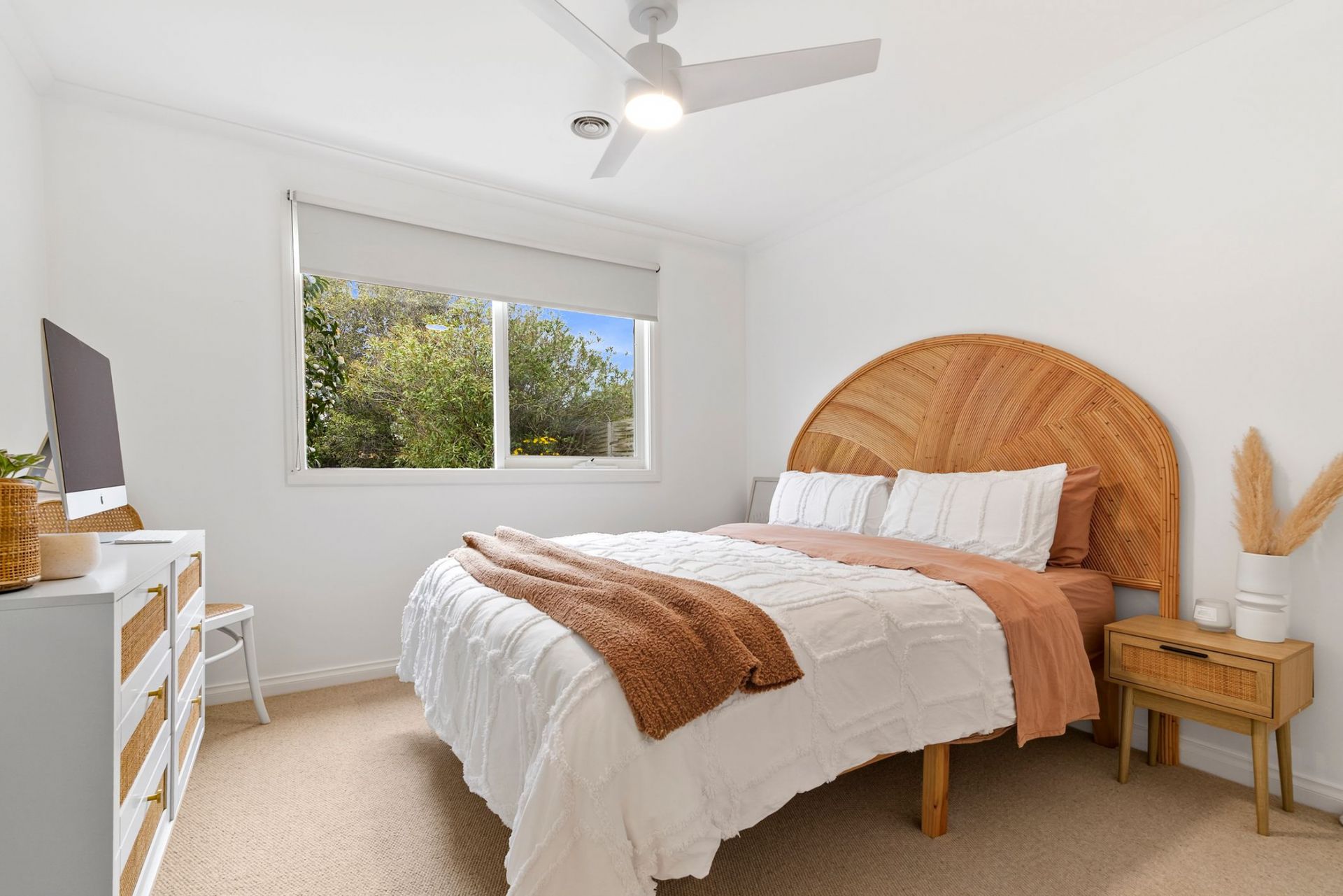 - Two sunlit bedrooms both have robes, and one also has a ceiling fan