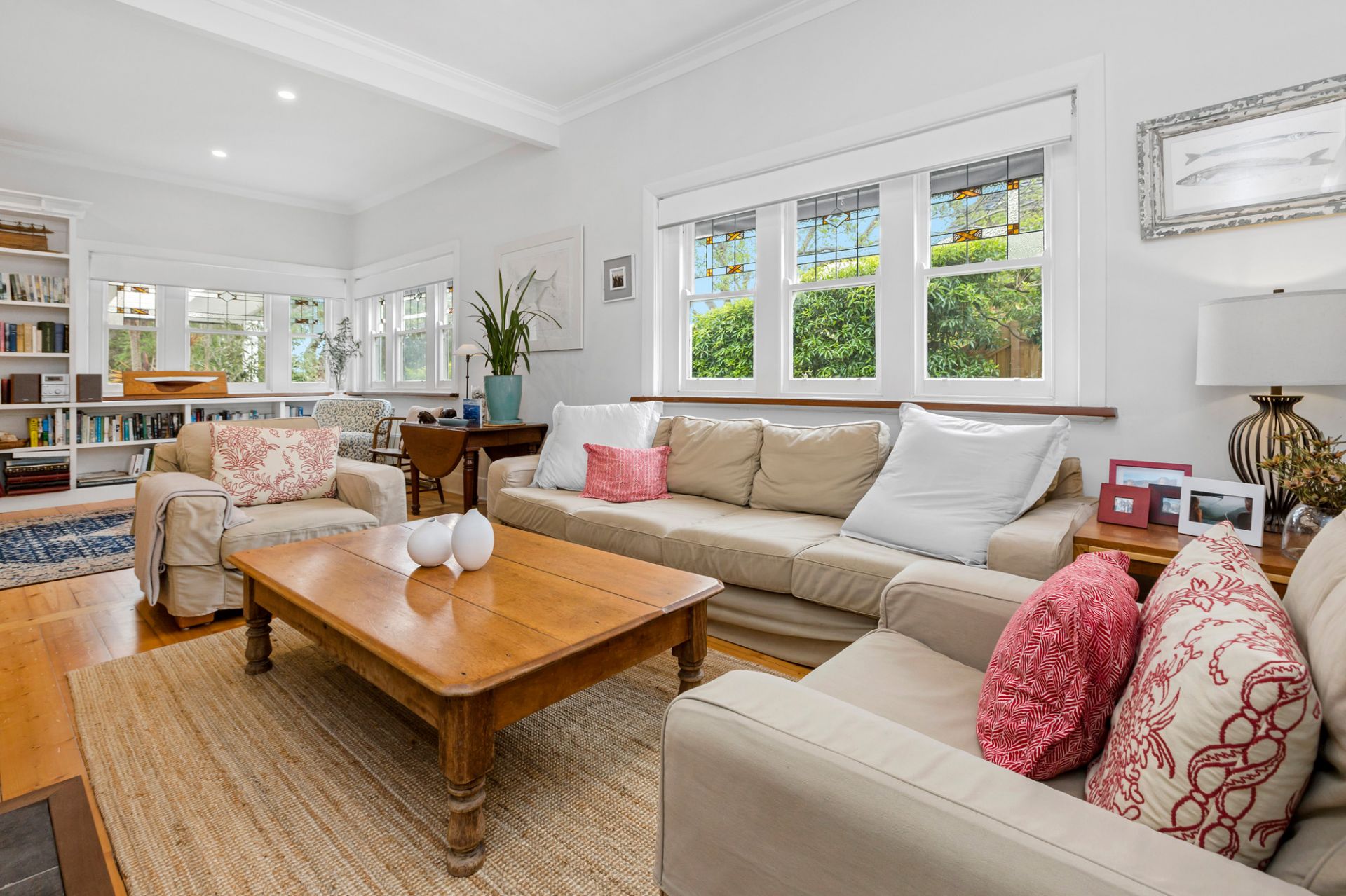Cradled within a quiet coastal court amid serene native gardens, the home resonates with the authentic charm of yesteryear with lofty ceilings, hardwood flooring, sash windows and an open fireplace complemented by a suite of contemporary upgrades.