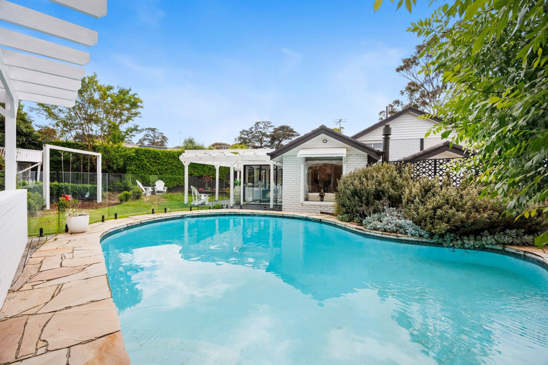 Offering stunning light, space and contemporary coastal style, this completely modernised Beleura Hill home is the perfect family address featuring a solar heated in-ground pool and spa, a large rear lawn for children to play and an intriguing split-level design that accentuates the home's wonderful spacious feel.