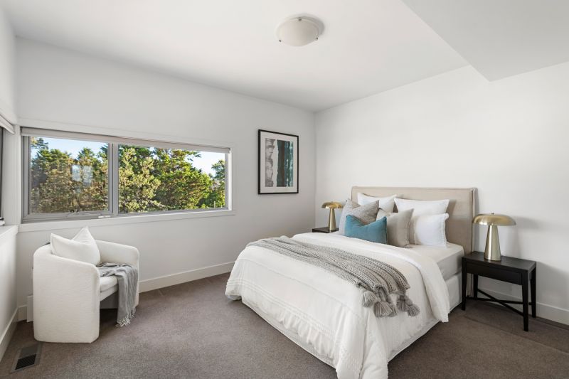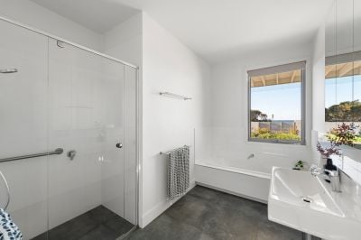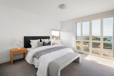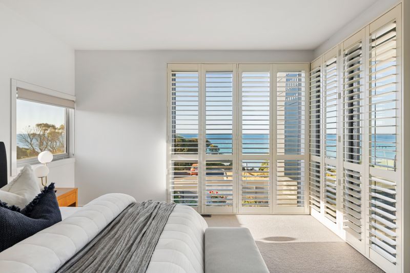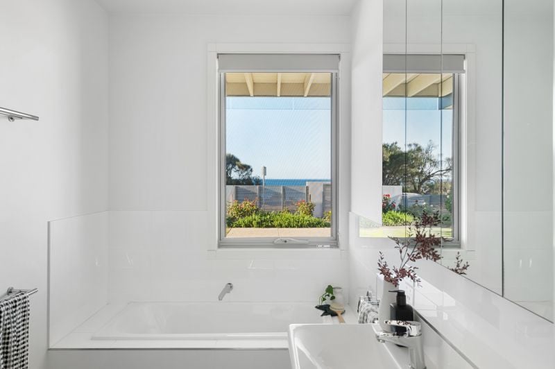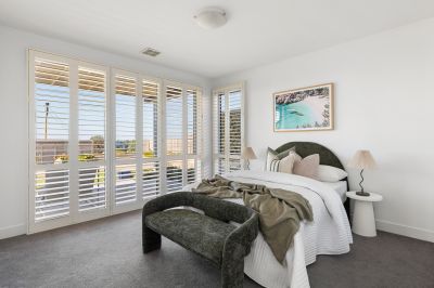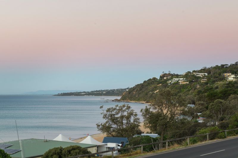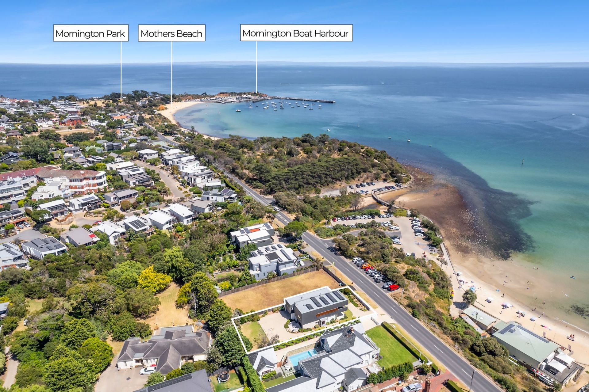 An esteemed coastal property deserving of its illustrious beachfront locale, featuring panoramic views over the bay that are guaranteed to remain unobstructed, this towering two-storey home sits sensationally positioned across from Mills Beach, and a just a brief stroll from the vibrancy of Main Street’s dynamic eateries and retail.