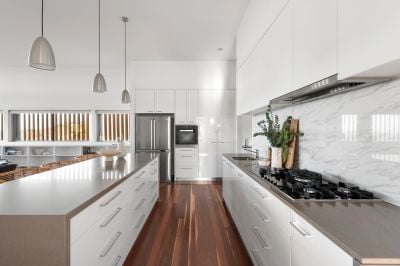 Bold architecture features sleek lines and impressive proportions, providing an exquisite backdrop for a lifestyle that brings together coastal beauty with urban sophistication. Against the breathtaking bay, laughter and connection flourish in an open-plan living and dining area and a bay-facing balcony, while the kitchen impresses with a generous butler’s pantry, premium Miele cooking appliances, and outstanding storage options.