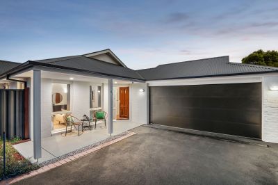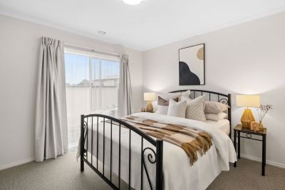 Fronted by a private master suite with classic ensuite and walk-in robe, a private accommodation wing presents three secondary bedrooms, one with exterior access, and a family bathroom with private toilet. Accompanied by a string of features, including new carpet, gas ducted heating, private gardens amid a large pergola that offers future opportunity to enclose, a high-walled Colorbond front fence with gate, and ample off-street parking for three or more vehicles.