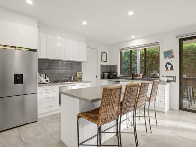 Tucked away at the rear of a boutique complex of just three townhouses, this contemporary home blends convenience with privacy. Situated a mere 600 meters (approx.) from the vibrant Main Street Mornington, transport links, Mornington Central, and the unspoiled beauty of Shire Hall Beach, this energy-efficient townhouse is a compelling choice for beach-loving residents.