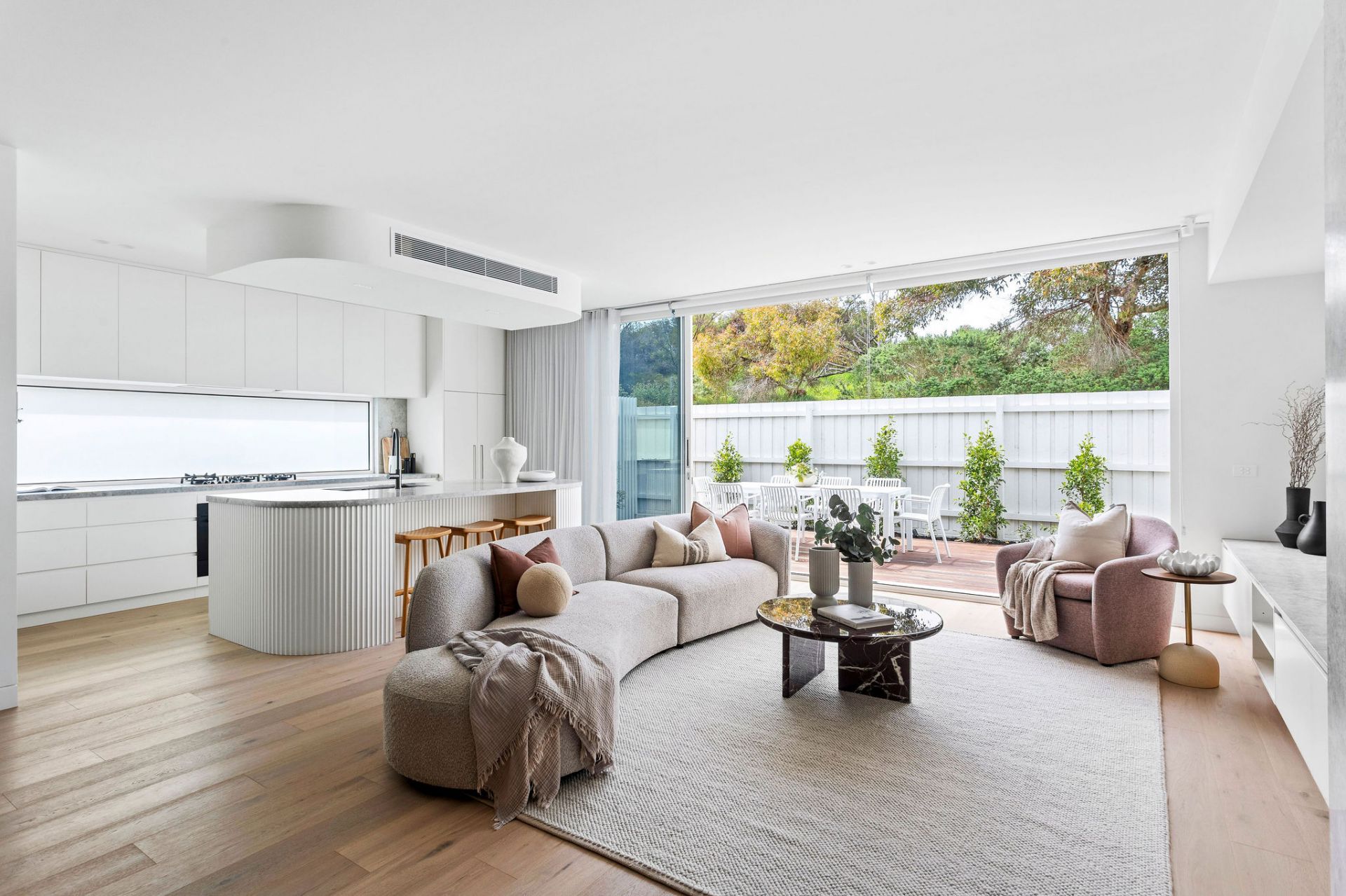 - Chef’s kitchen with Smeg 900mm appliances, deep island bench
