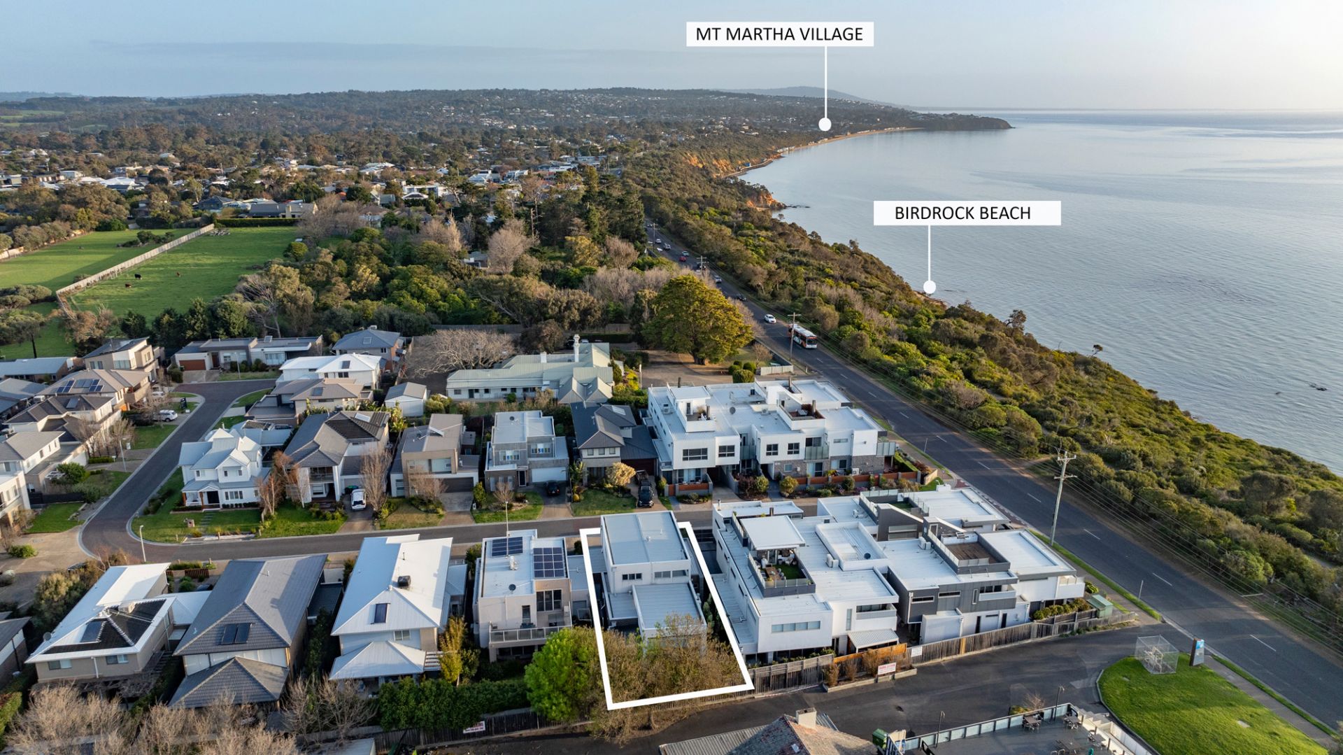 Enviably located just steps from the shore, and rich in sophisticated contemporary coastal appeal, this luxuriously appointed, custom-designed four-bedroom Mount Martha residence offers spacious and light-filled north-facing living with the bonus of water views from the upper level.
