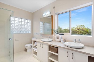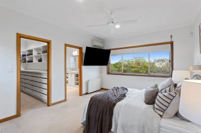 Sitting at the highest peak to watch the ships glide across Port Phillip Bay, the stunning master bedroom features a large walk-in robe and contemporary ensuite, while a glamorous chef's kitchen, wine cellar and three-car garage are among the list of accouterments in this elite Mt Martha sanctuary.