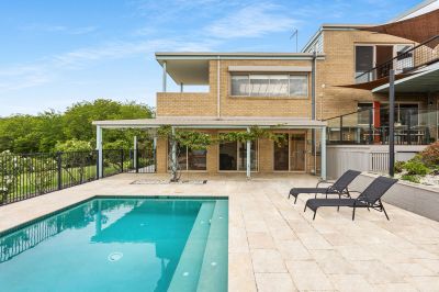 Branching off the grand entry with a two-storey void and luminous atrium windows, the masterfully crafted floorplan boasts both formal and informal living and dining zones with multiple sliding doors opening to the gardens and decks, while the slate-floored rumpus room on the lower level unites directly to the pool area for resort-style family enjoyment.