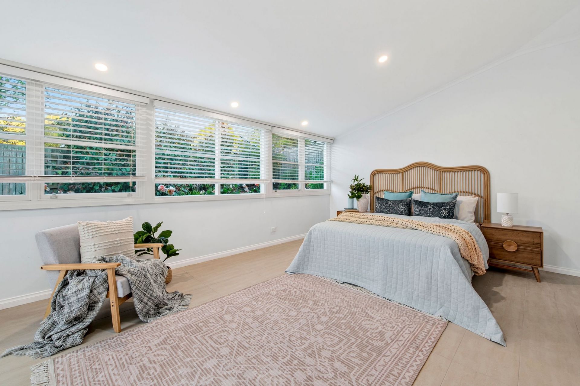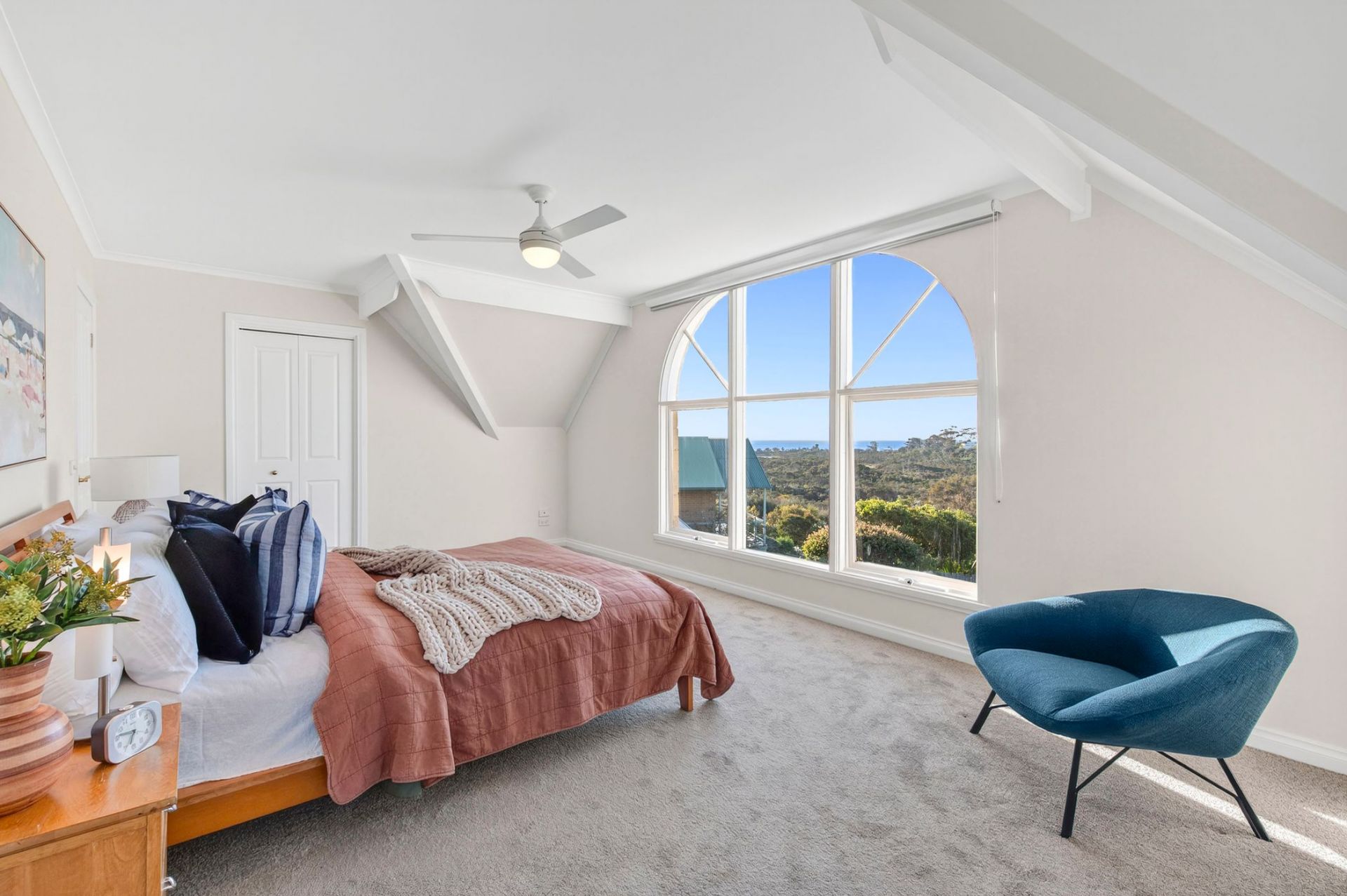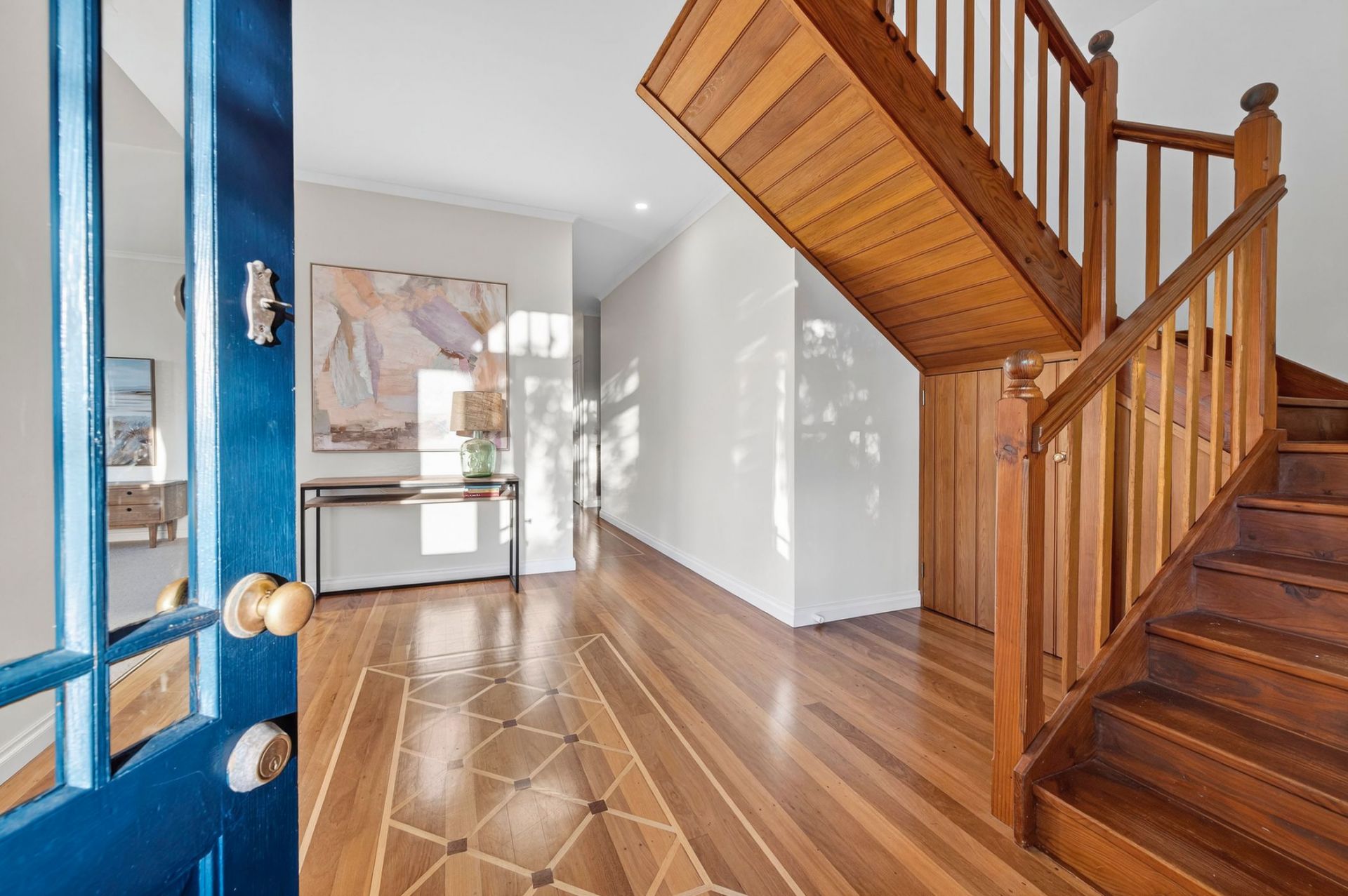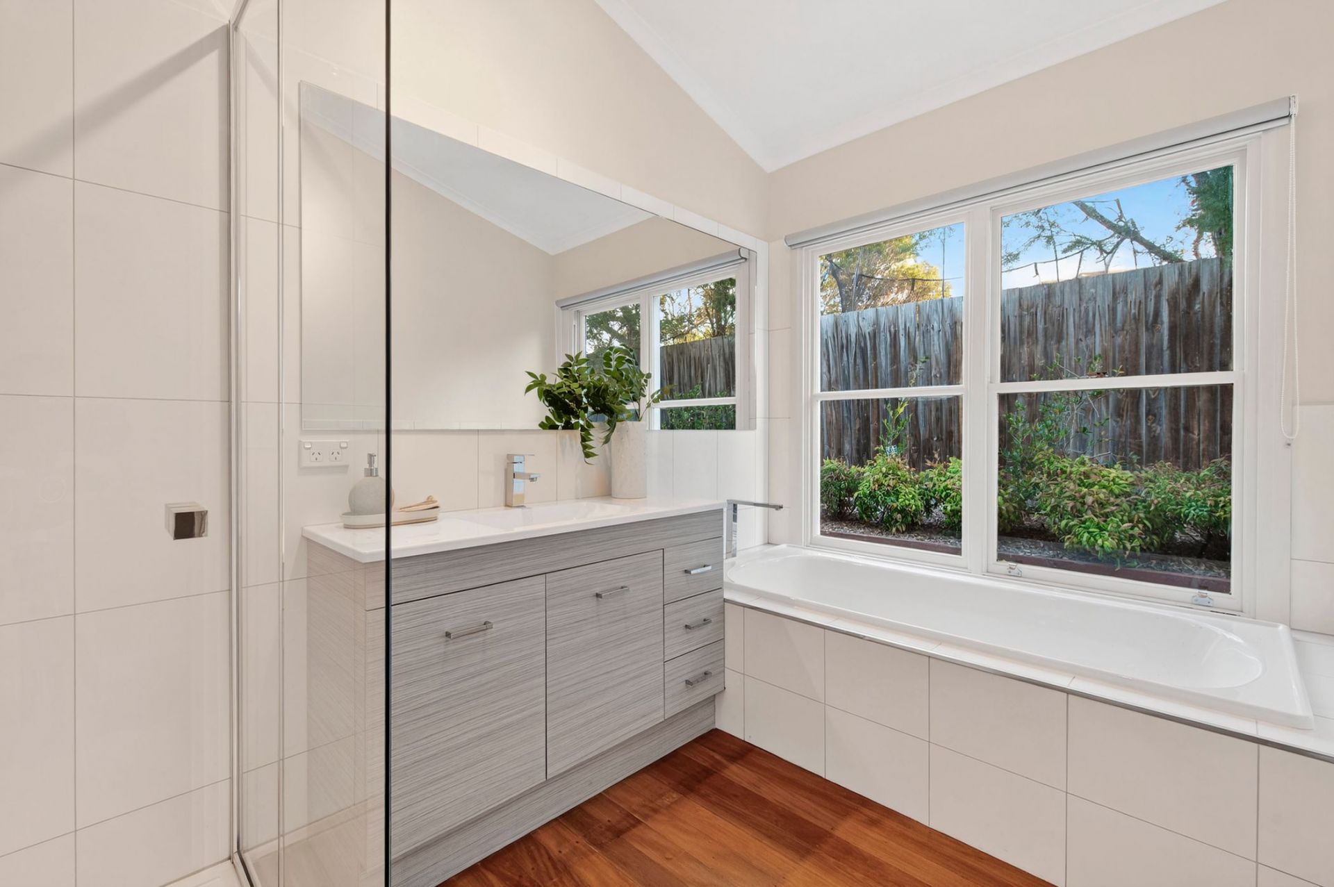 Five bedrooms, four with robes, and two renovated bathrooms extends the family-sized offering upstairs, where the main bedroom headlines with an arched north-facing window, bright ensuite with feature tub and treetop aspects, and a walk-in robe. Accompanied by gas ducted heating, split-system air conditioning, a double garage and additional off-street parking, it offers exceptional beachside living in a premier court locale, just steps from Mount Martha Village and Bowls Club, Balcombe Grammar, and public transport.