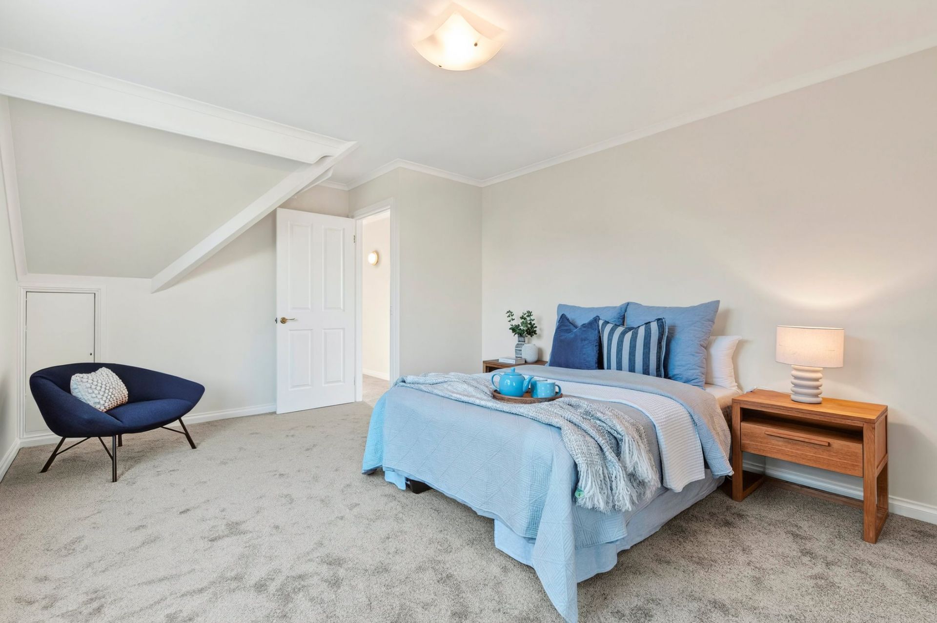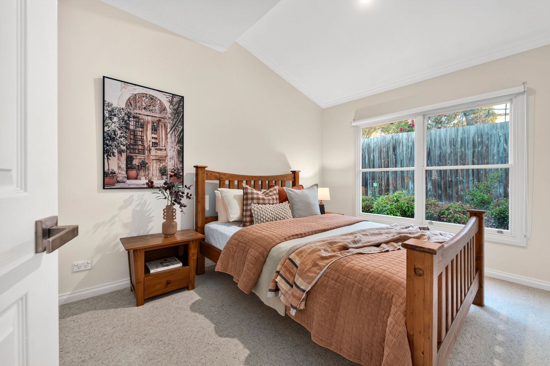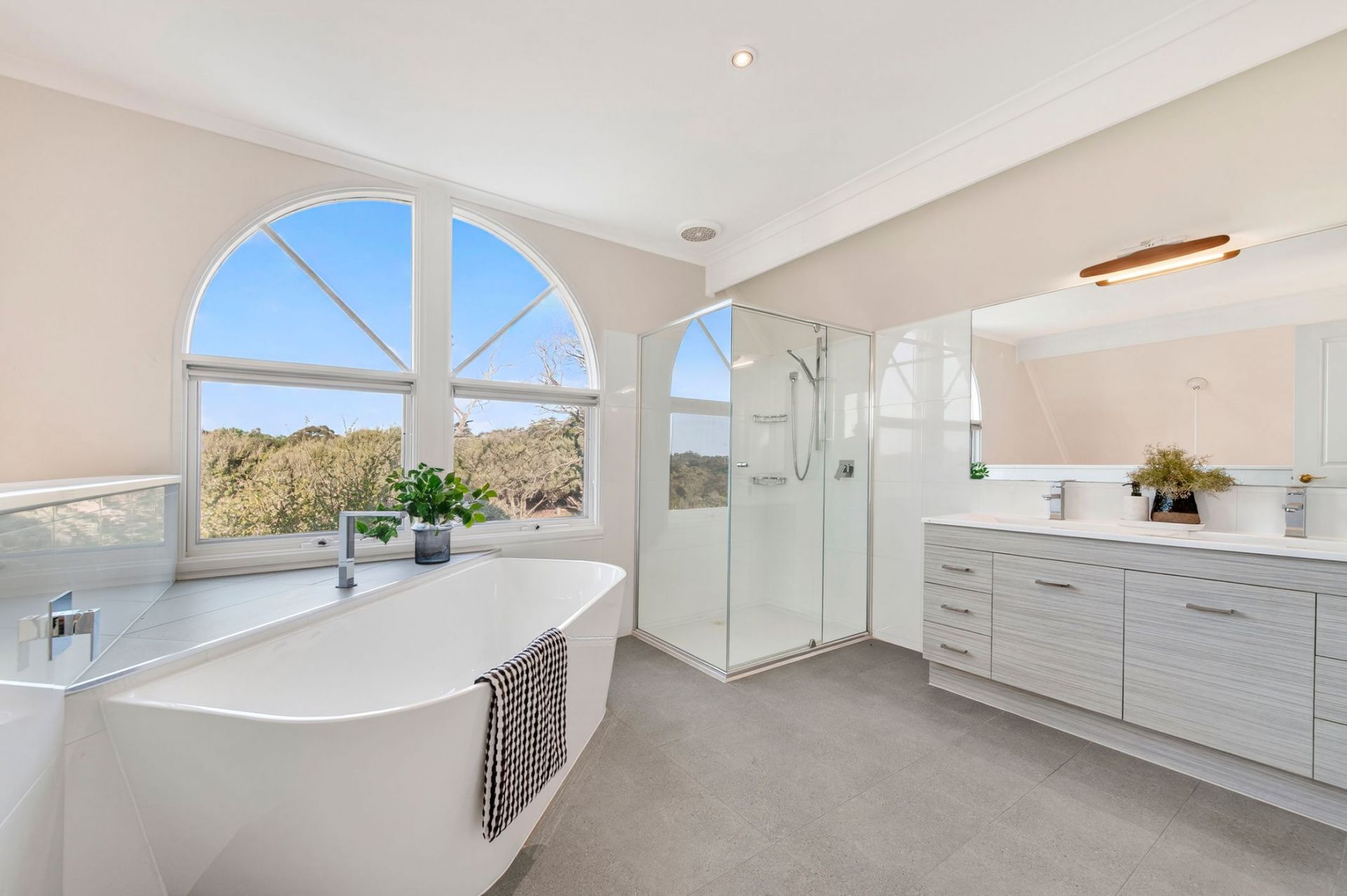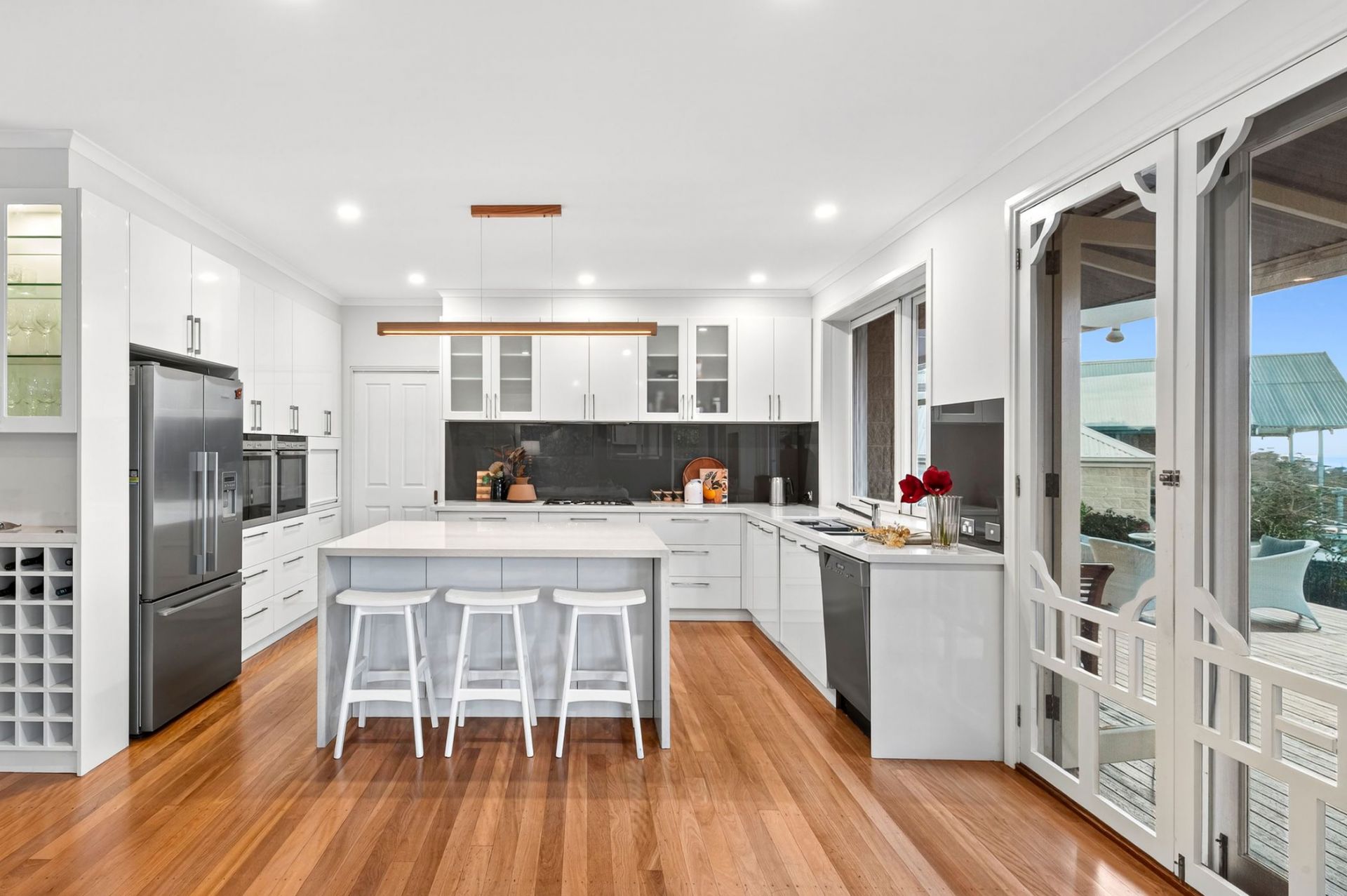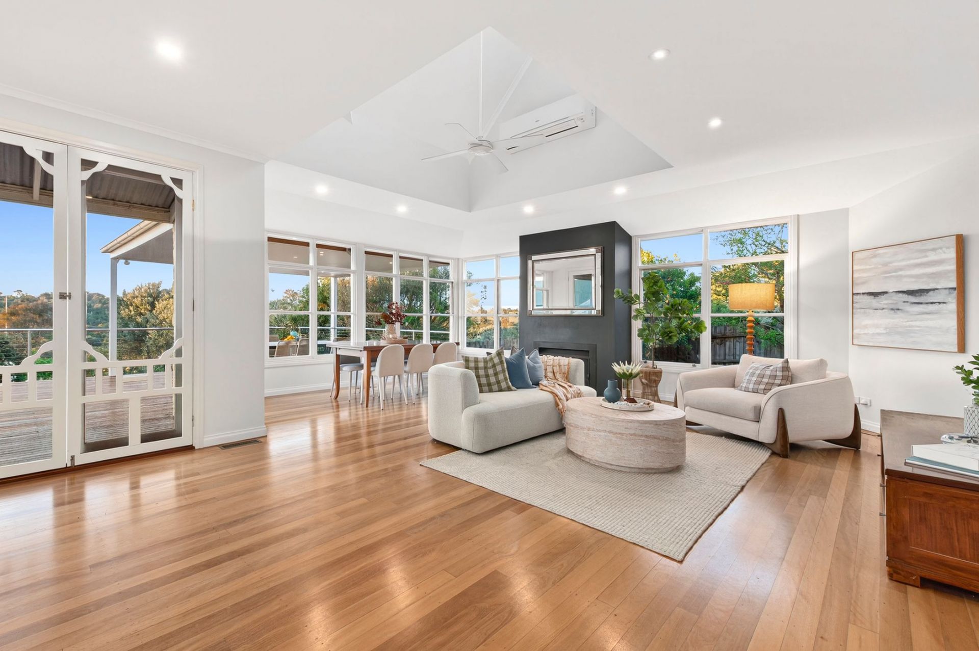 Five bedrooms, four with robes, and two renovated bathrooms extends the family-sized offering upstairs, where the main bedroom headlines with an arched north-facing window, bright ensuite with feature tub and treetop aspects, and a walk-in robe. Accompanied by gas ducted heating, split-system air conditioning, a double garage and additional off-street parking, it offers exceptional beachside living in a premier court locale, just steps from Mount Martha Village and Bowls Club, Balcombe Grammar, and public transport.
