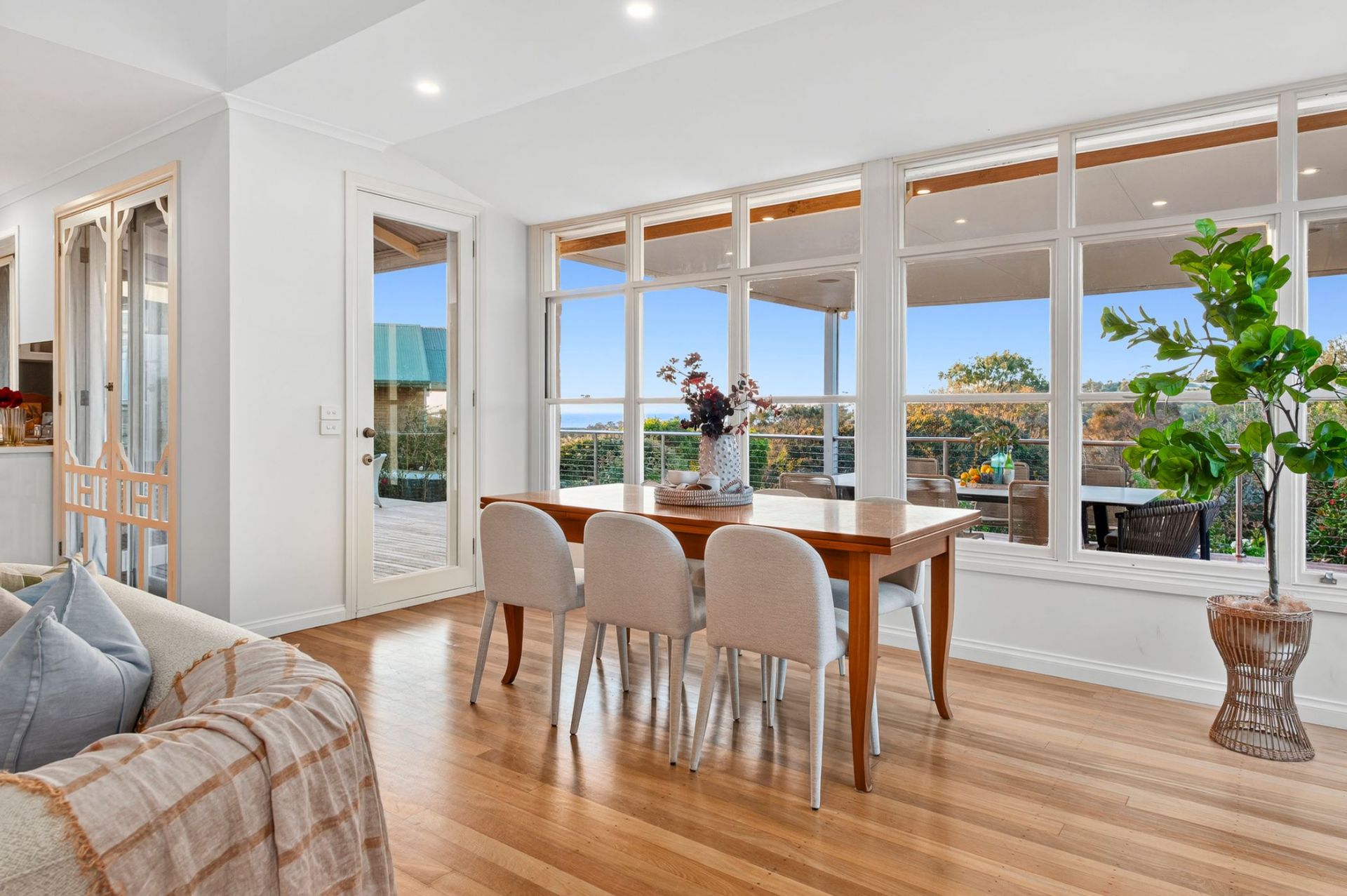 Filled with sunlight in a charming beachside setting that puts Mount Martha’s Estuary and Beach at your back door, this captivating Sandstone home provides total retreat-style living with an unanticipated glistening panorama of Port Phillip Bay.