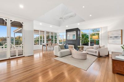 - Sandstone facade, architectural ceiling heights, lush landscaped gardens