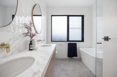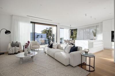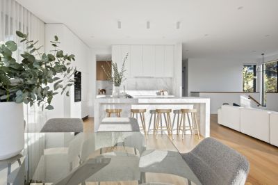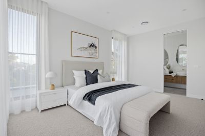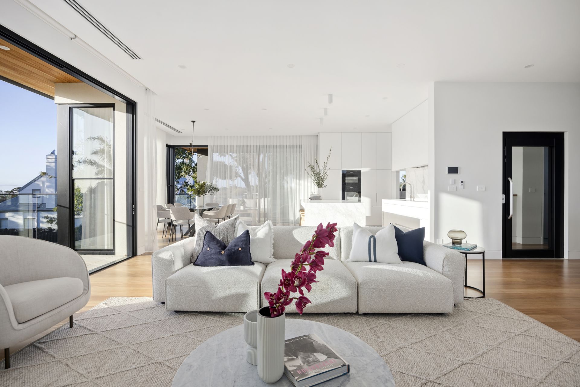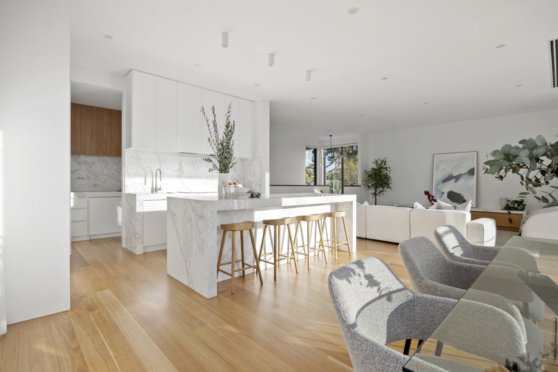 Crafted by a boutique builder with high-end finishes throughout, the home features Italian marble benchtops, solid blackbutt timber floors, wool carpets, Parisi brass tapware, European tiles, and sconce lighting. The thoughtfully designed layout includes two spacious living areas, two master suites with ensuites, a central bathroom with a bath, two powder rooms, and 3m ceilings throughout.