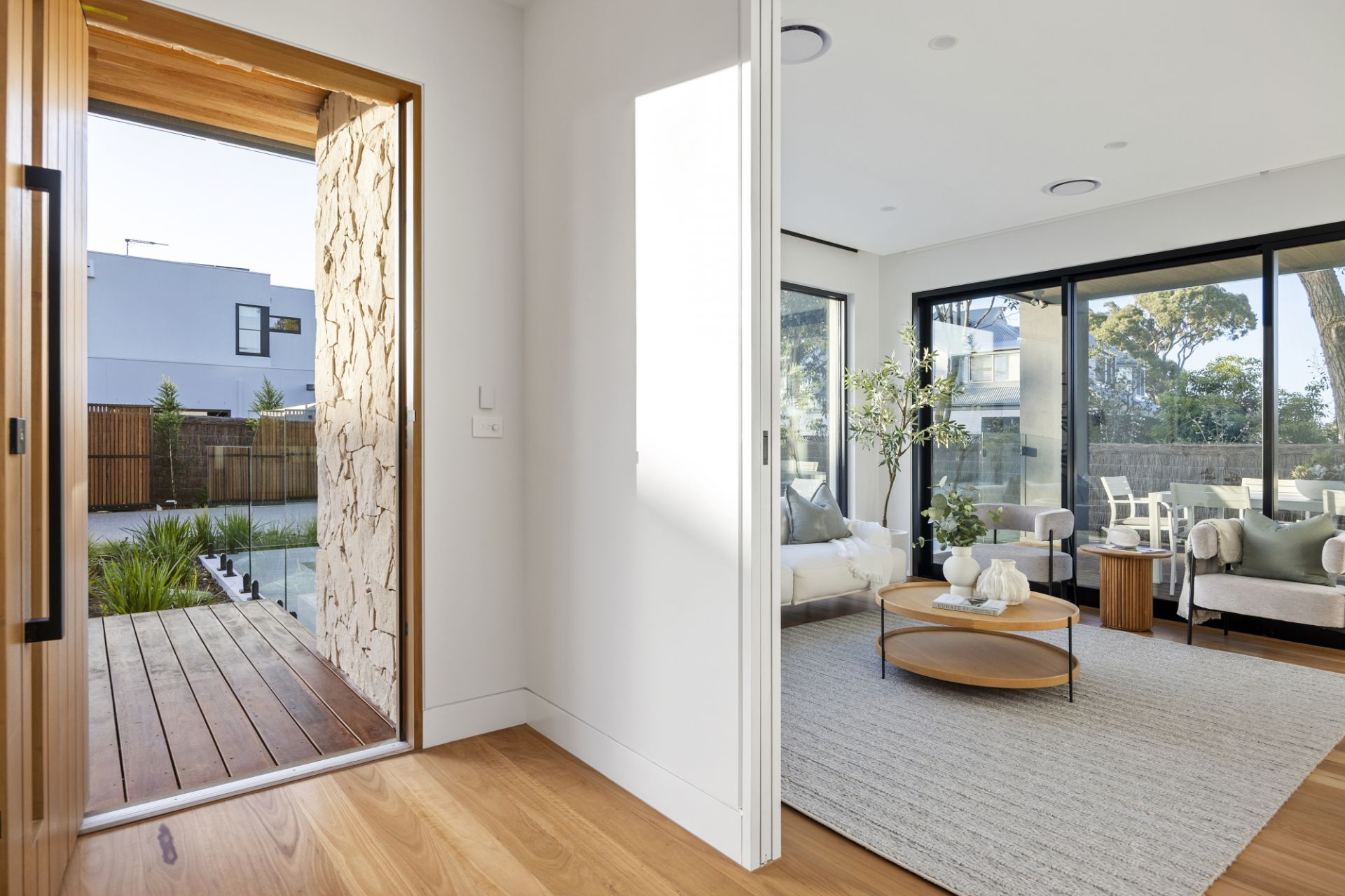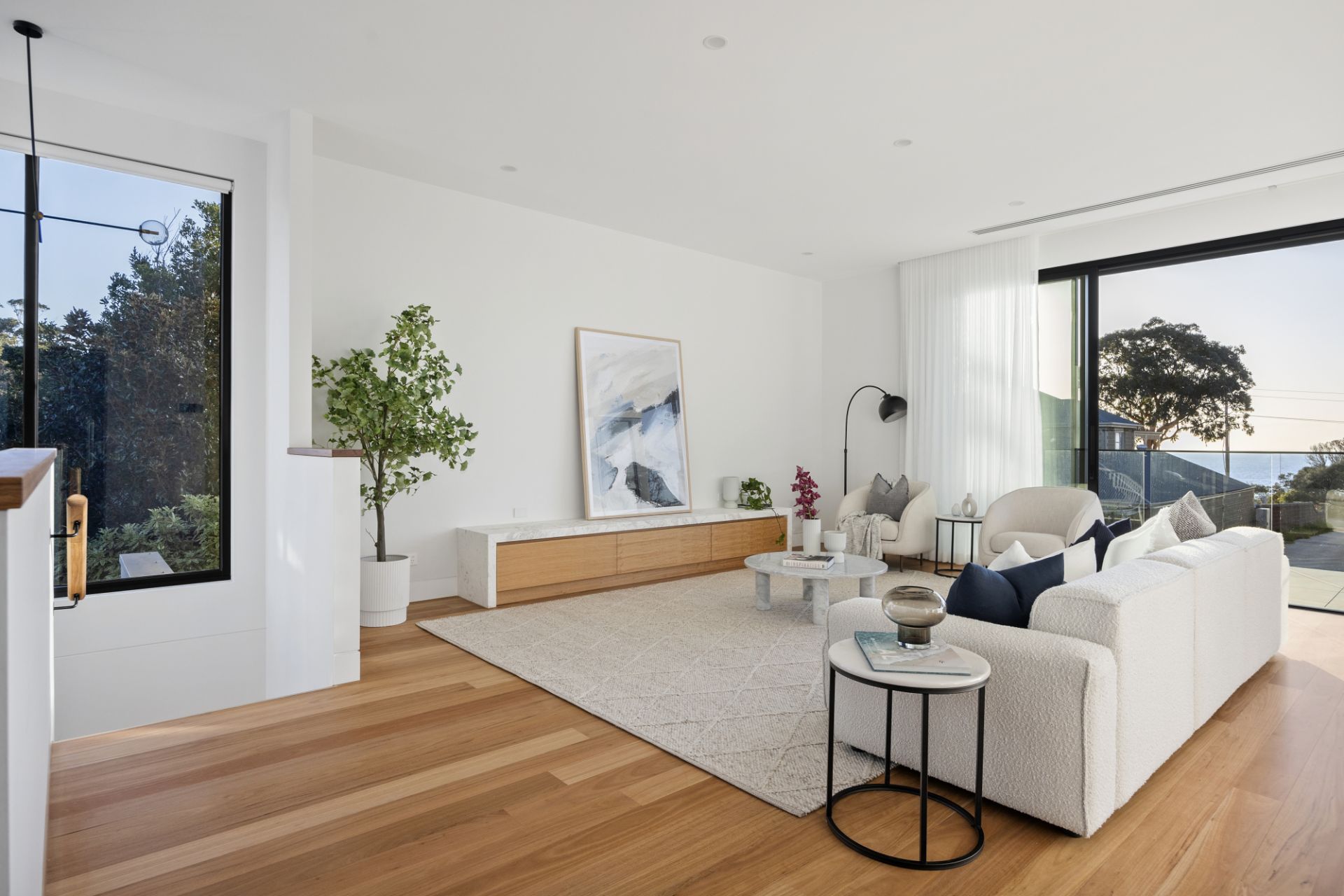 This brand-new, architect-designed four-bedroom beachfront home, combines luxury, sustainability and style in a coveted Mt Martha Esplanade setting. Positioned just across the road from North Beach and nestled among mature treetops, it offers peaceful seclusion set back from the street, with north-facing light and sweeping bay views to the Melbourne skyline.